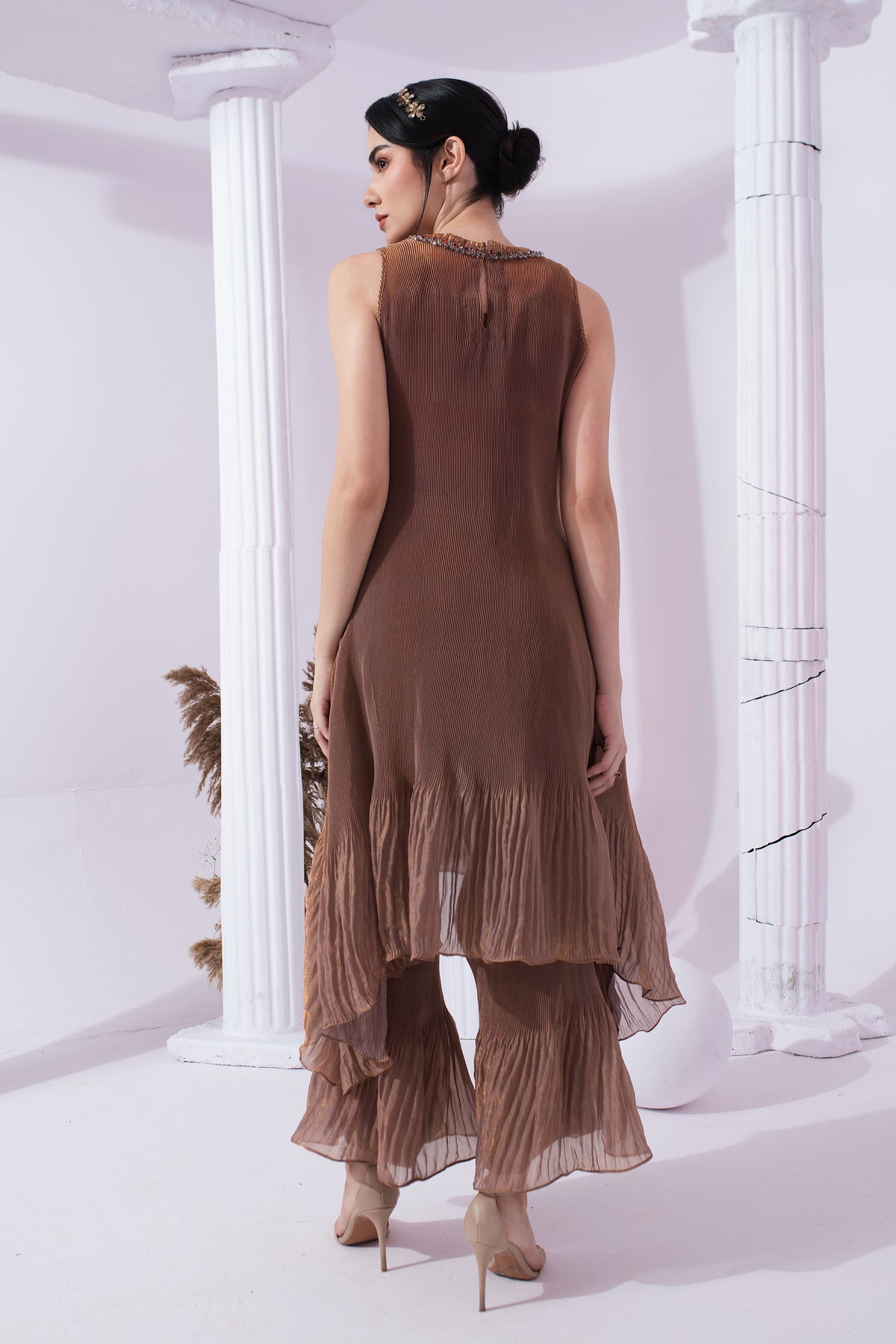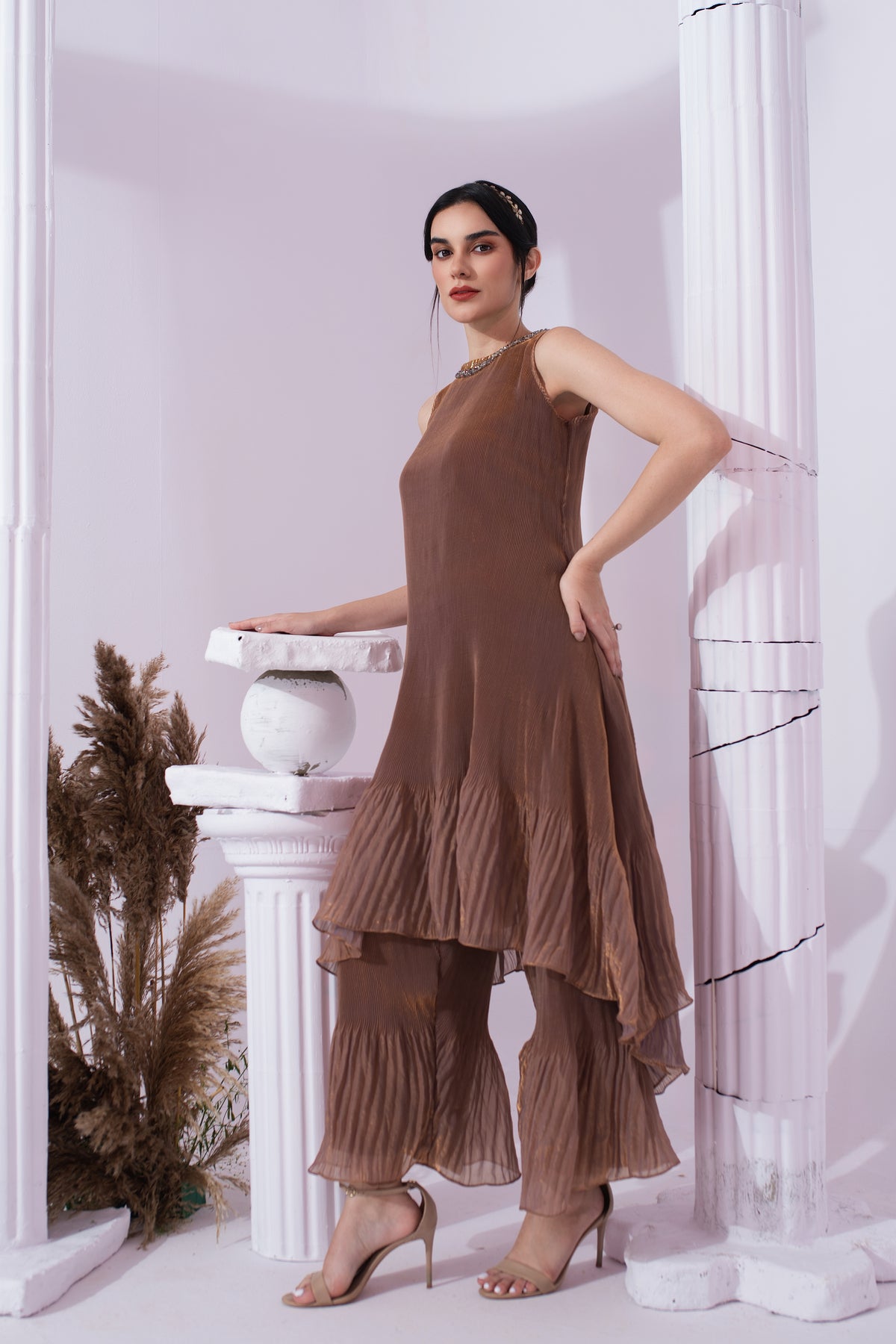 METALIC CHESTNUT HIGH NECK KURTA SET