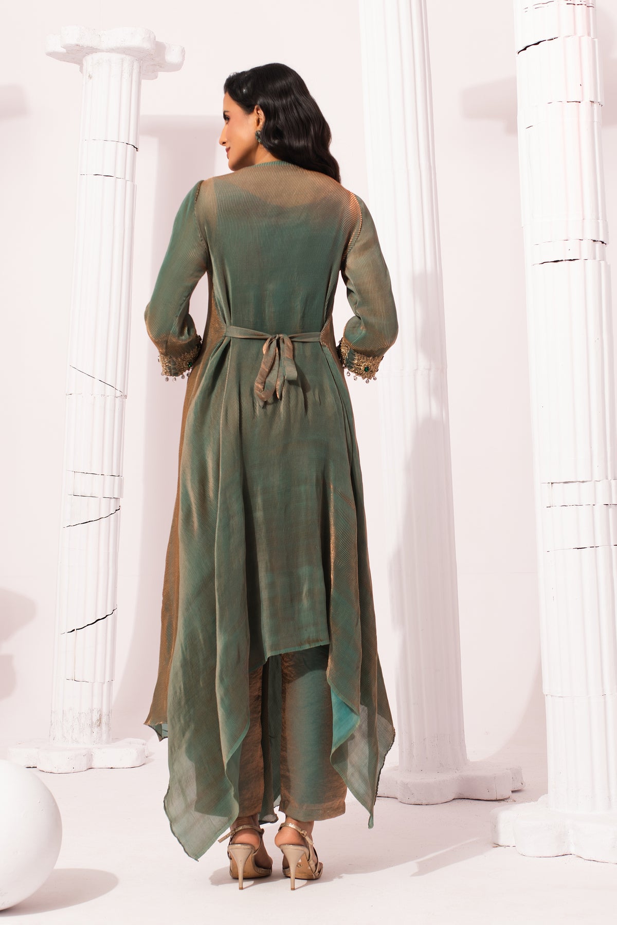 METALIC MOSS GREEN DRAPE CO-ORD SET
