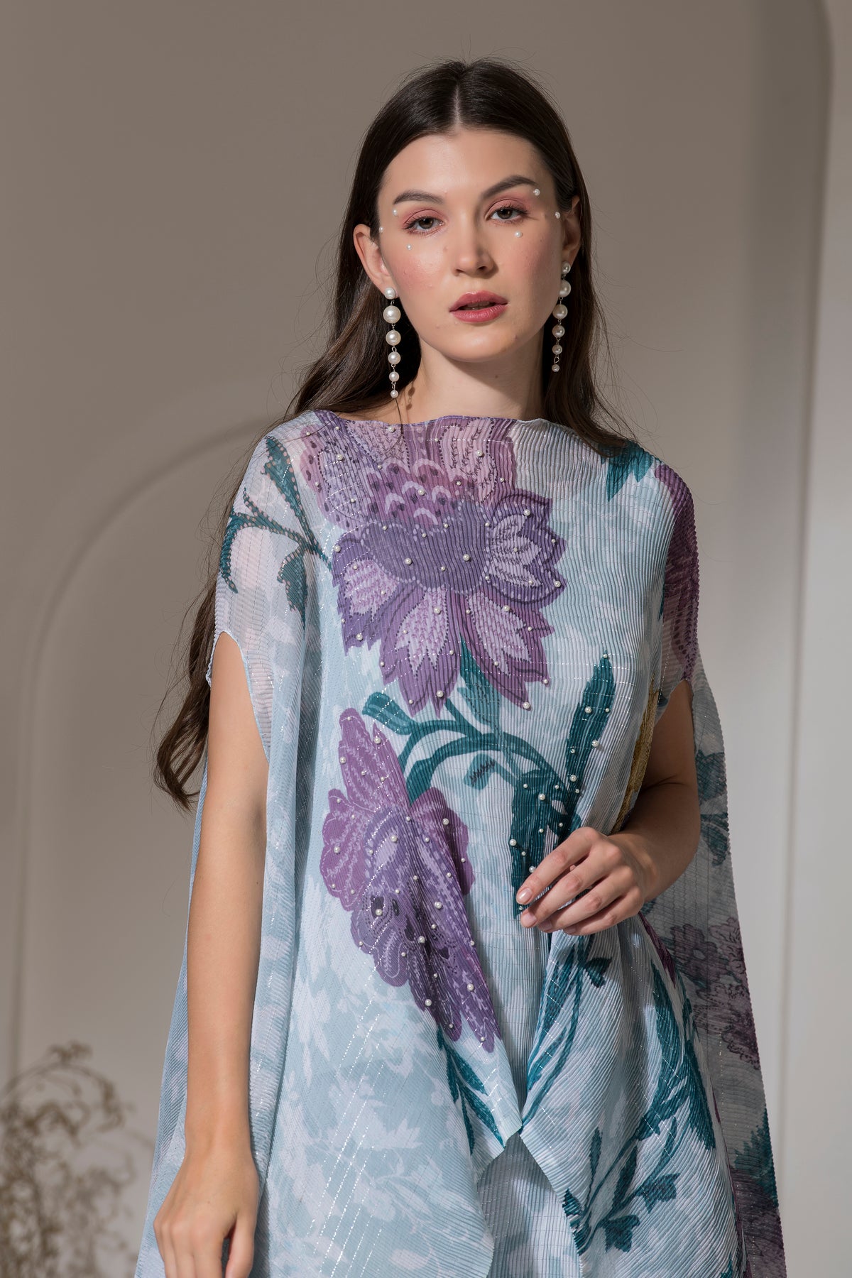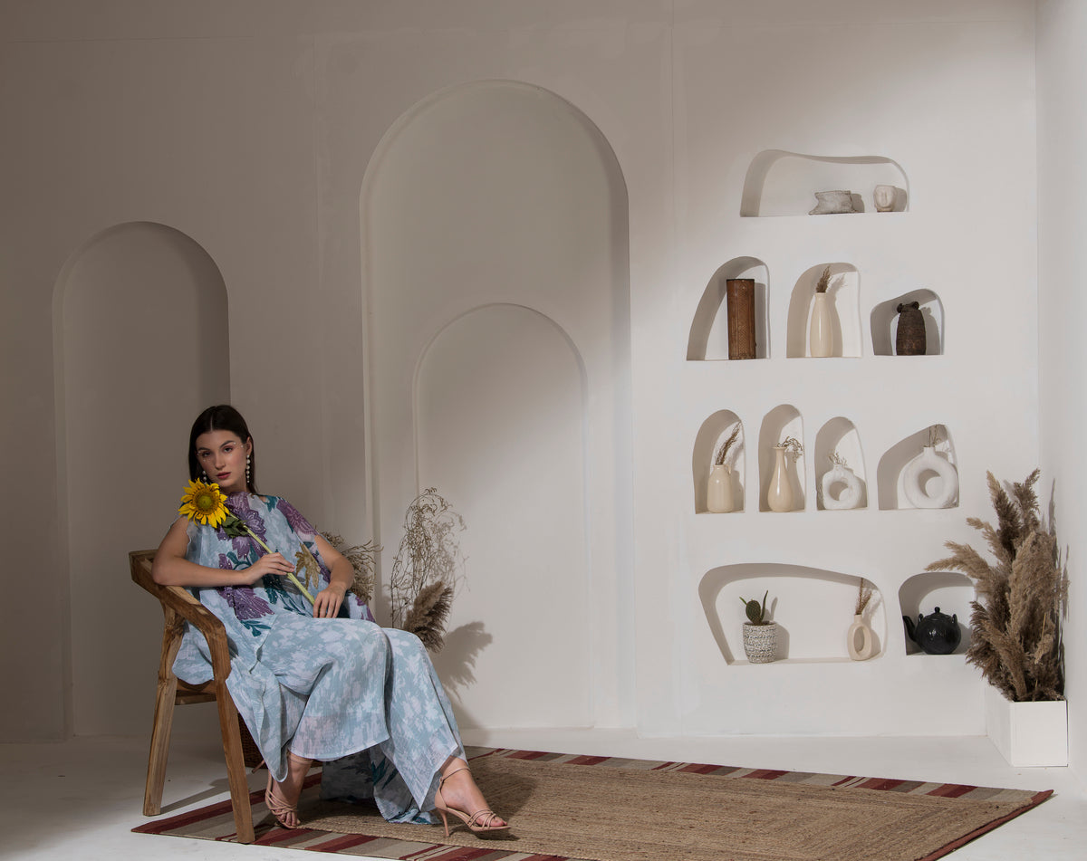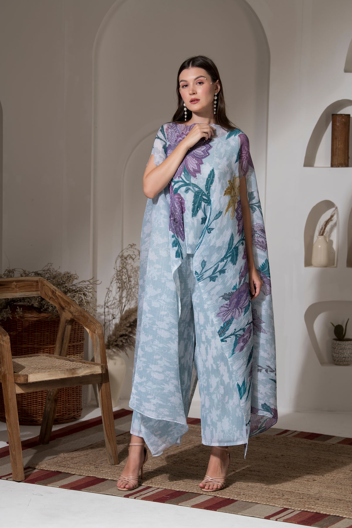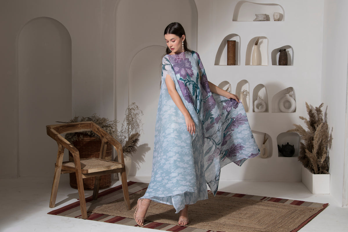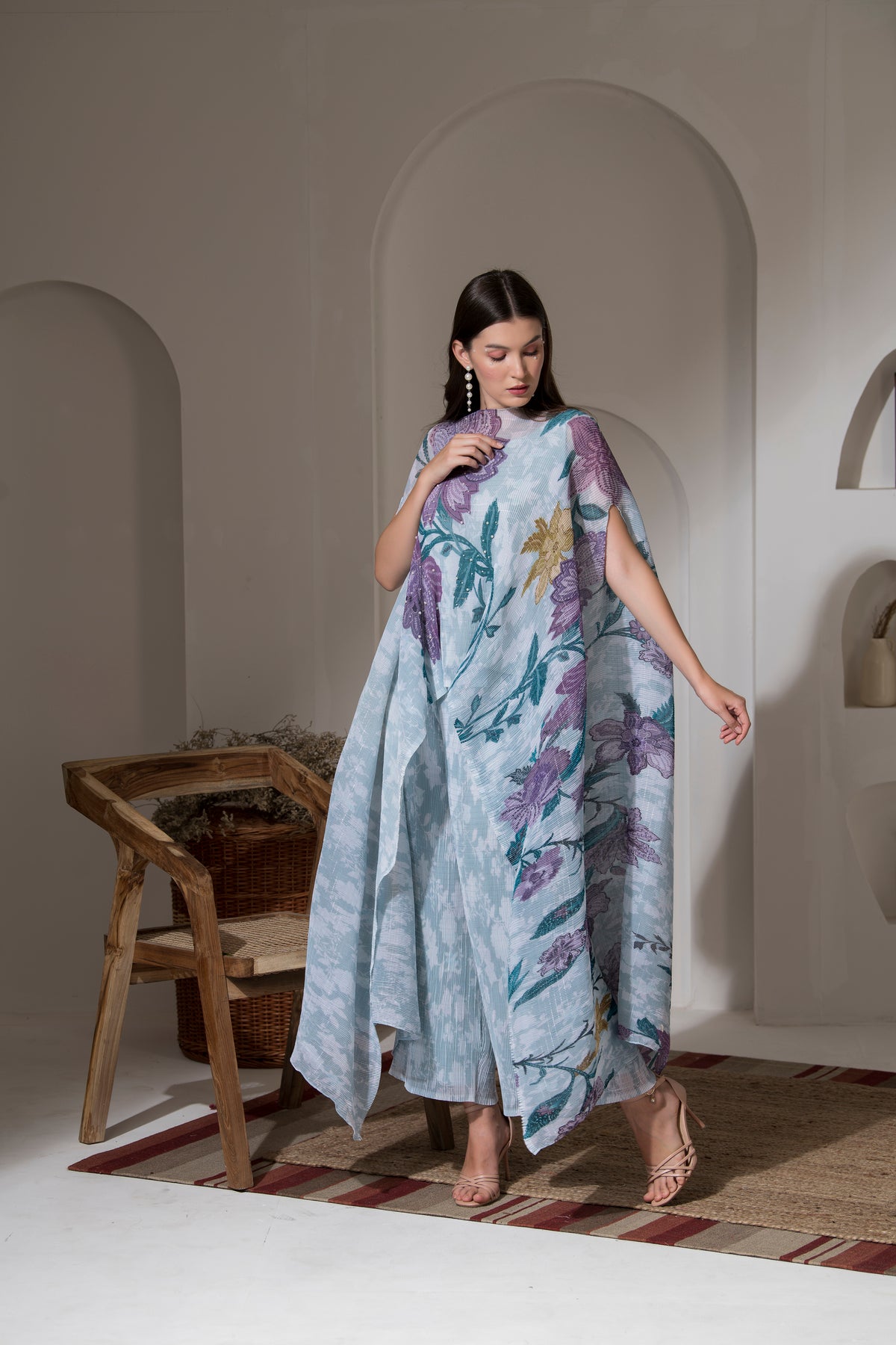 MOON LIGHT BLUE FLOWER PRINT KAFTAN & PANT SET