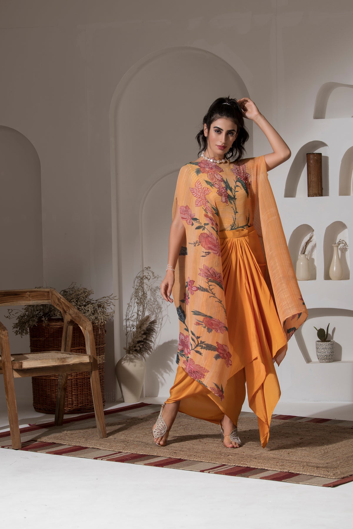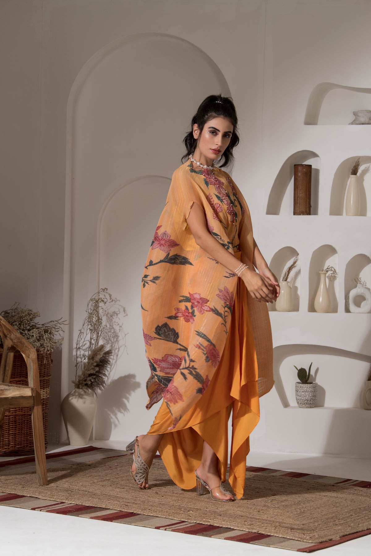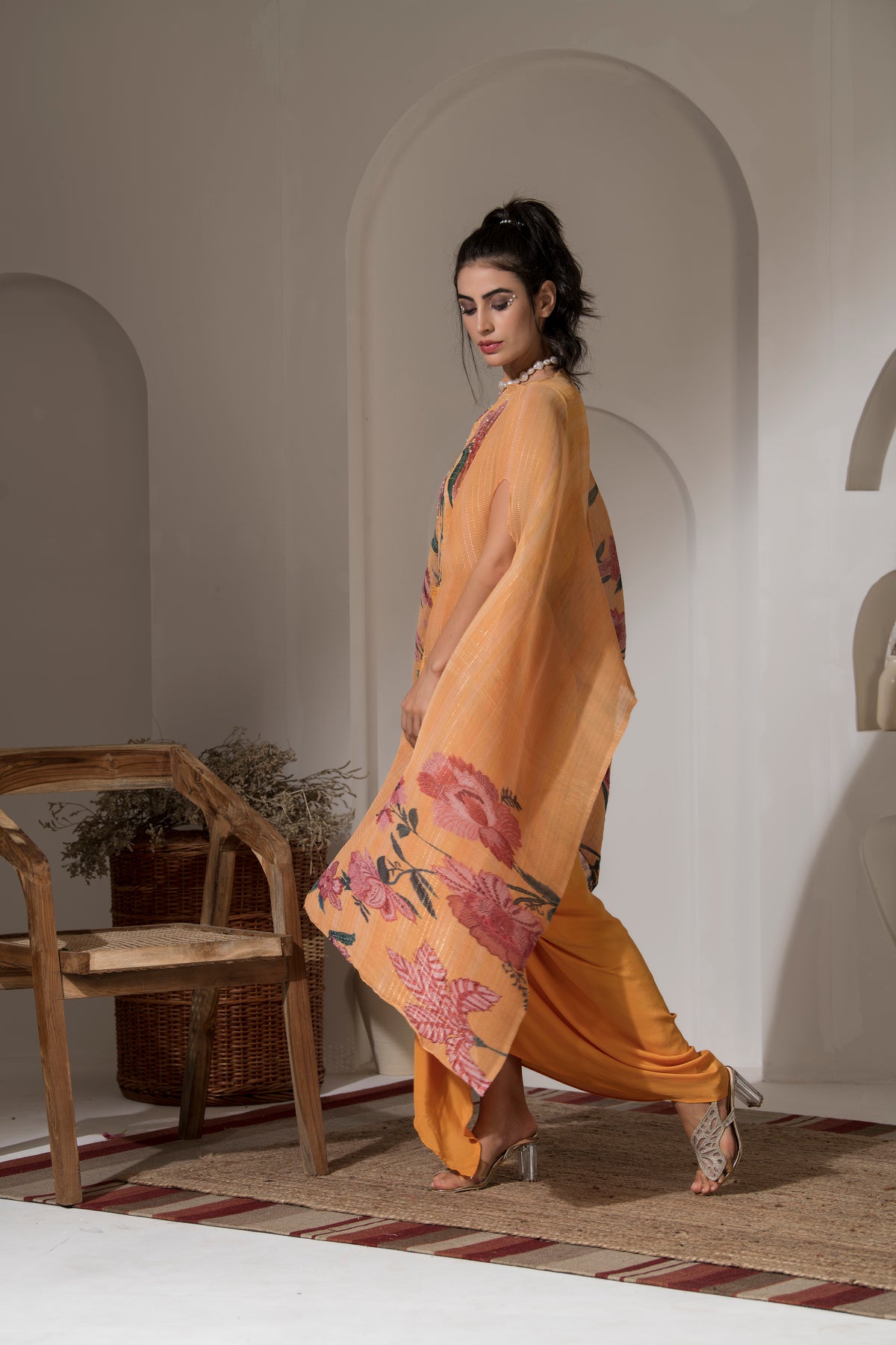GOLDEN YELLOW FLOWER KAFTAN WITH DHOTI SET