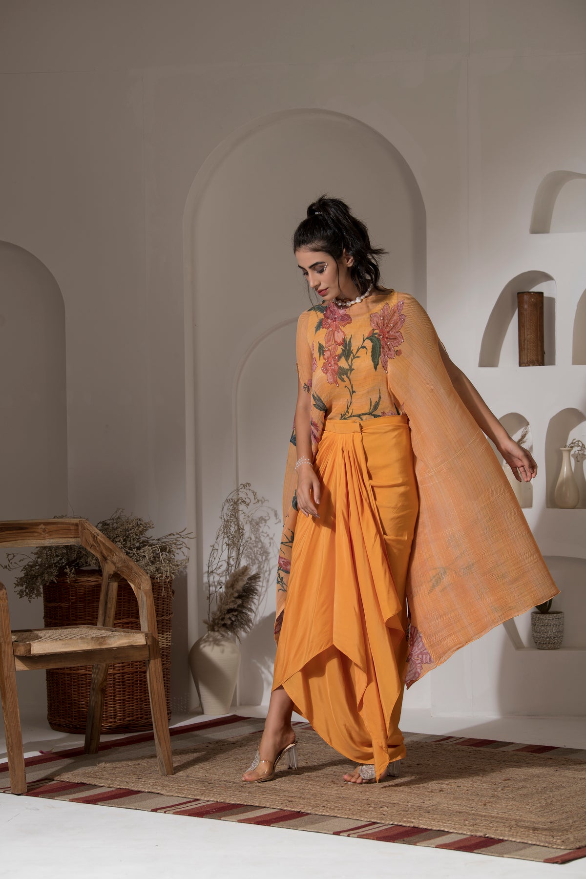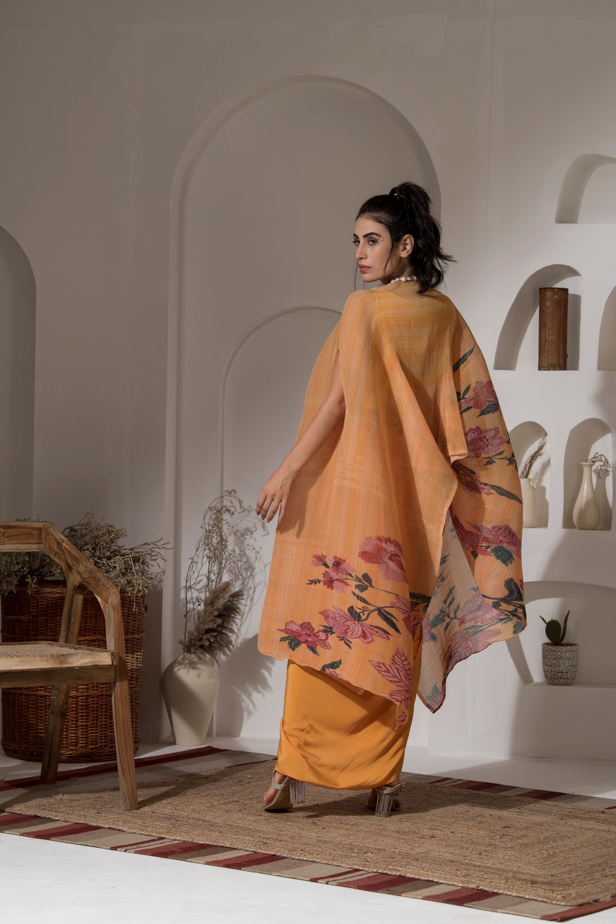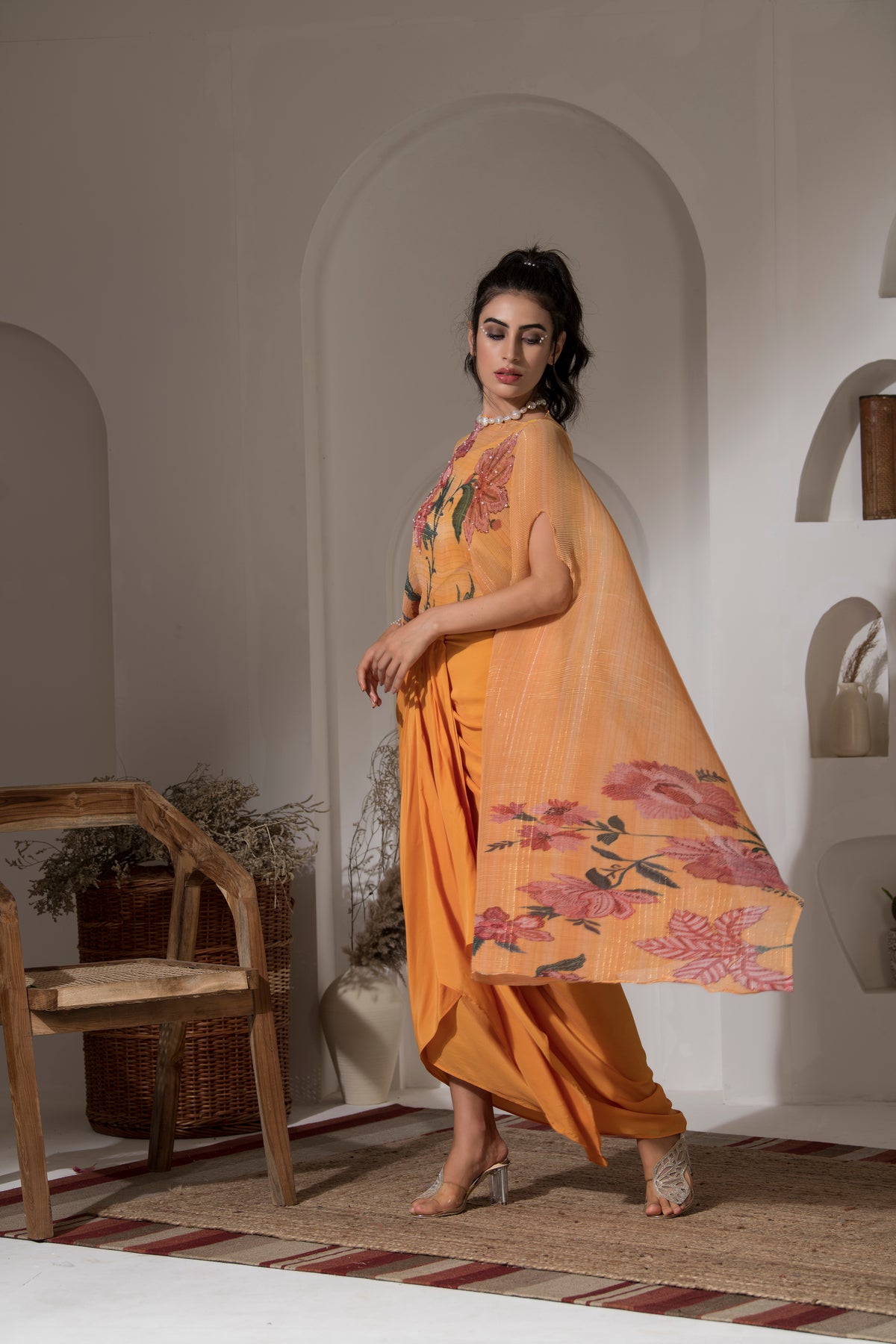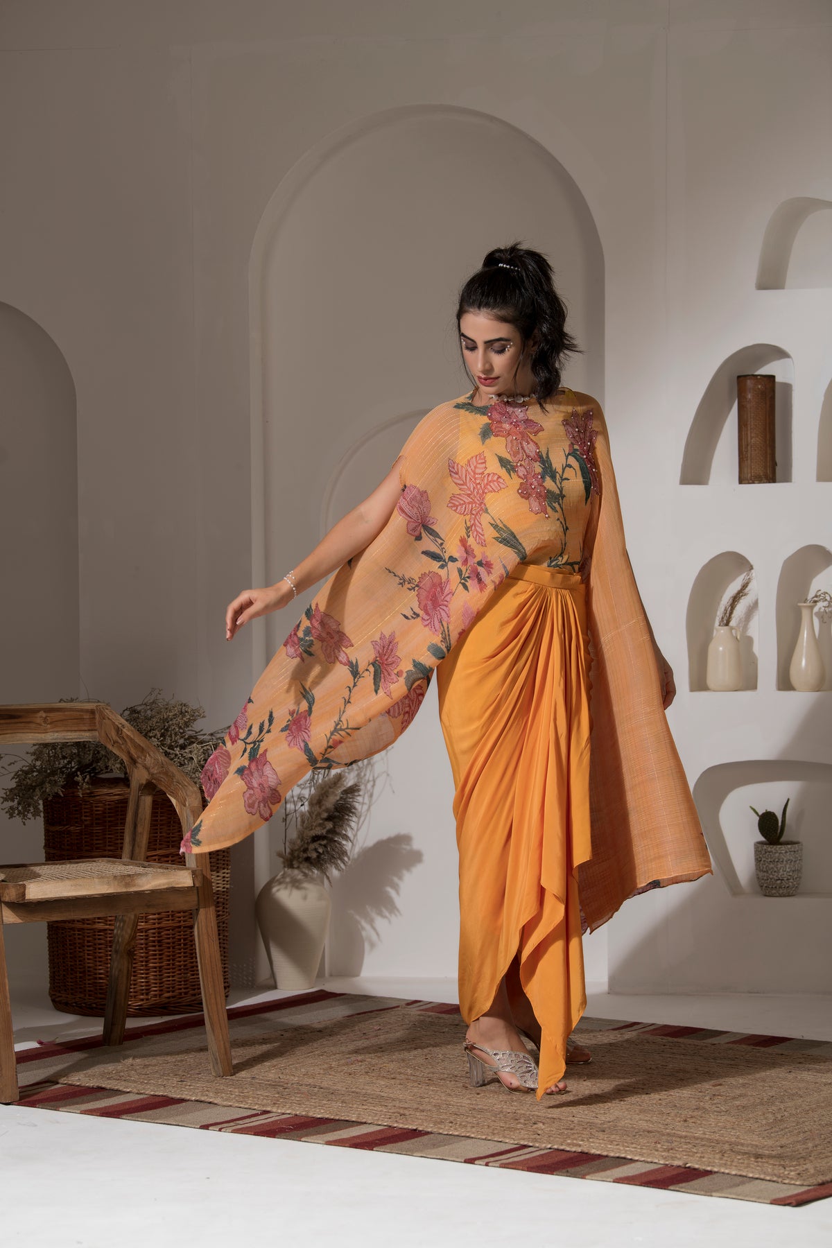 GOLDEN YELLOW FLOWER KAFTAN WITH DHOTI SET