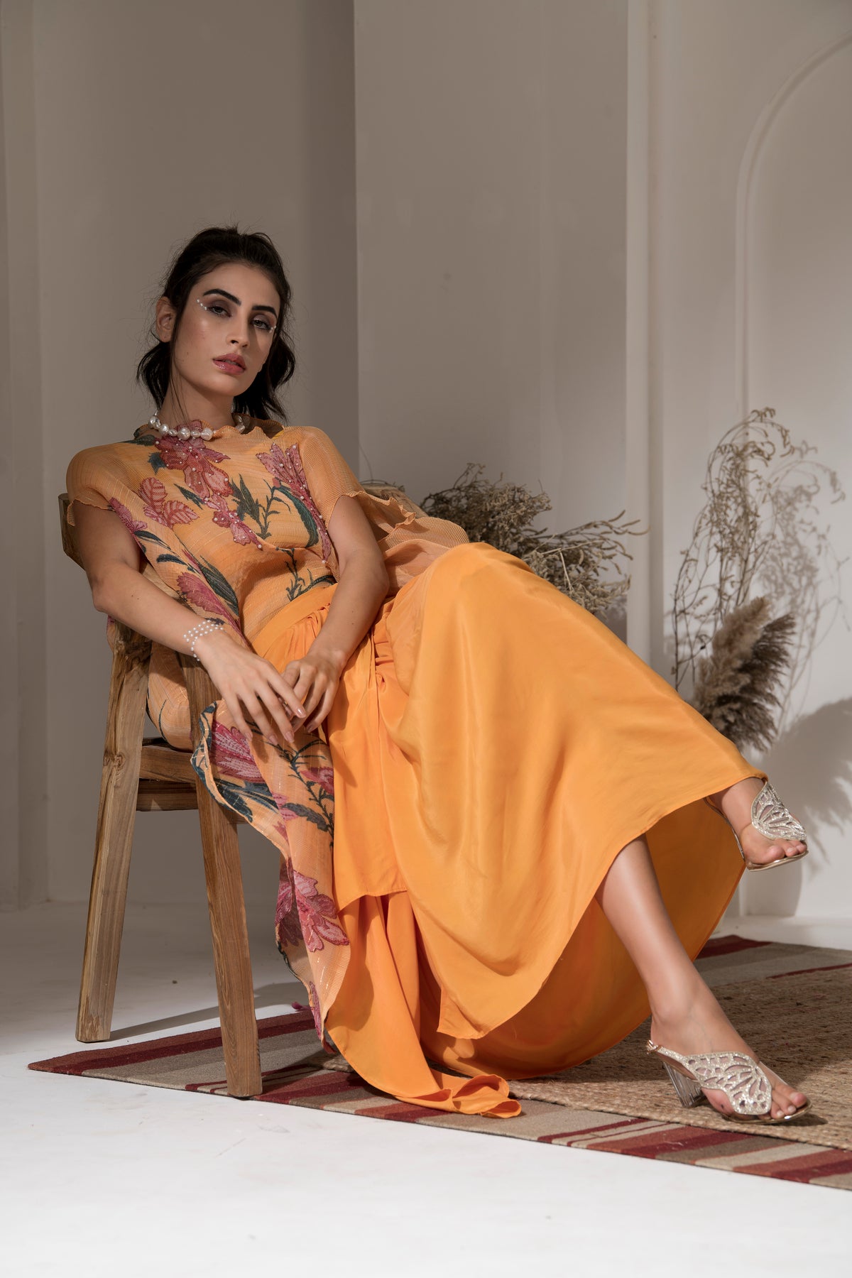 * Featuring a Golden Yellow Kaftan with Dhoti Set.  It is paired with Hand-Embroidered Pearl work on Lurex Chiffon Fabric.