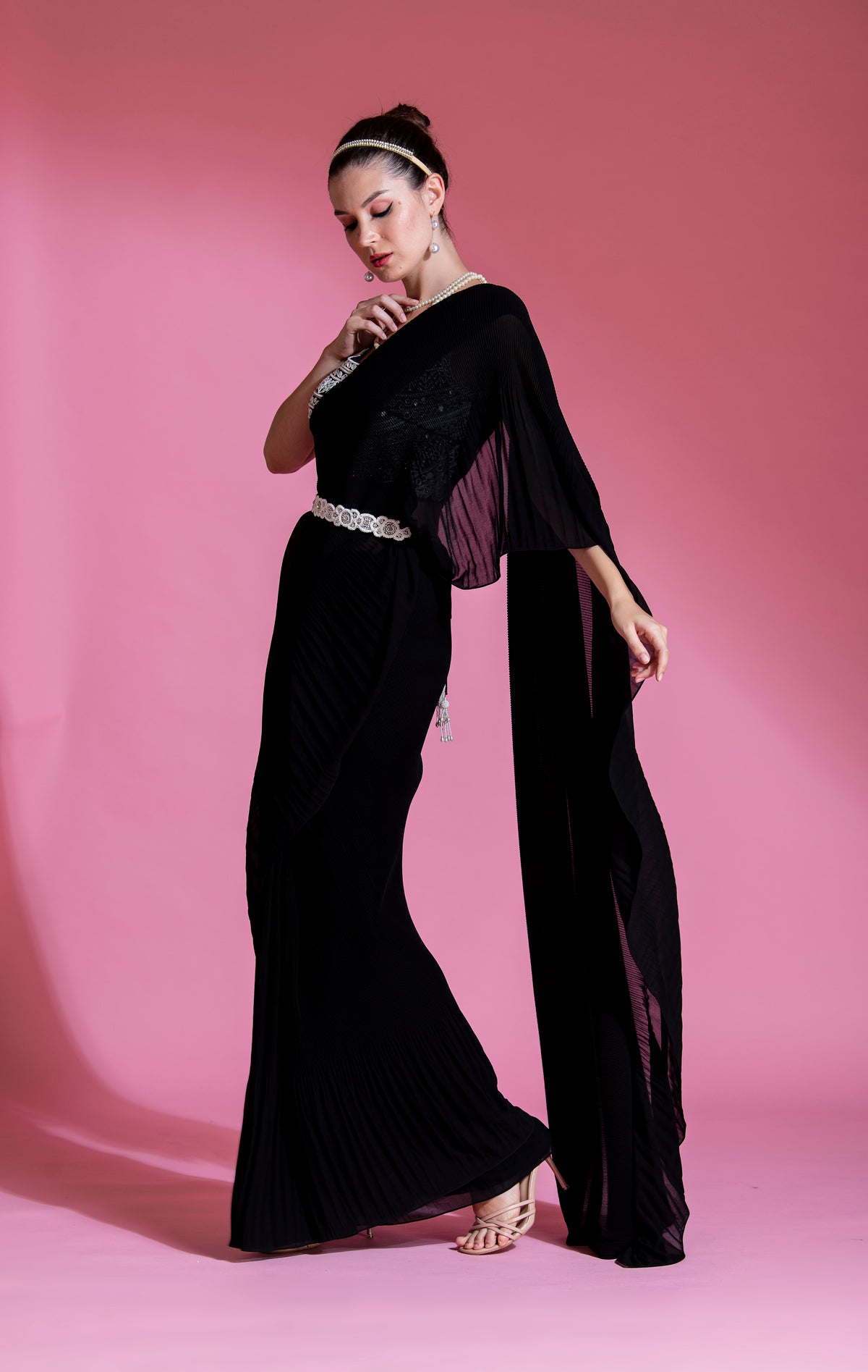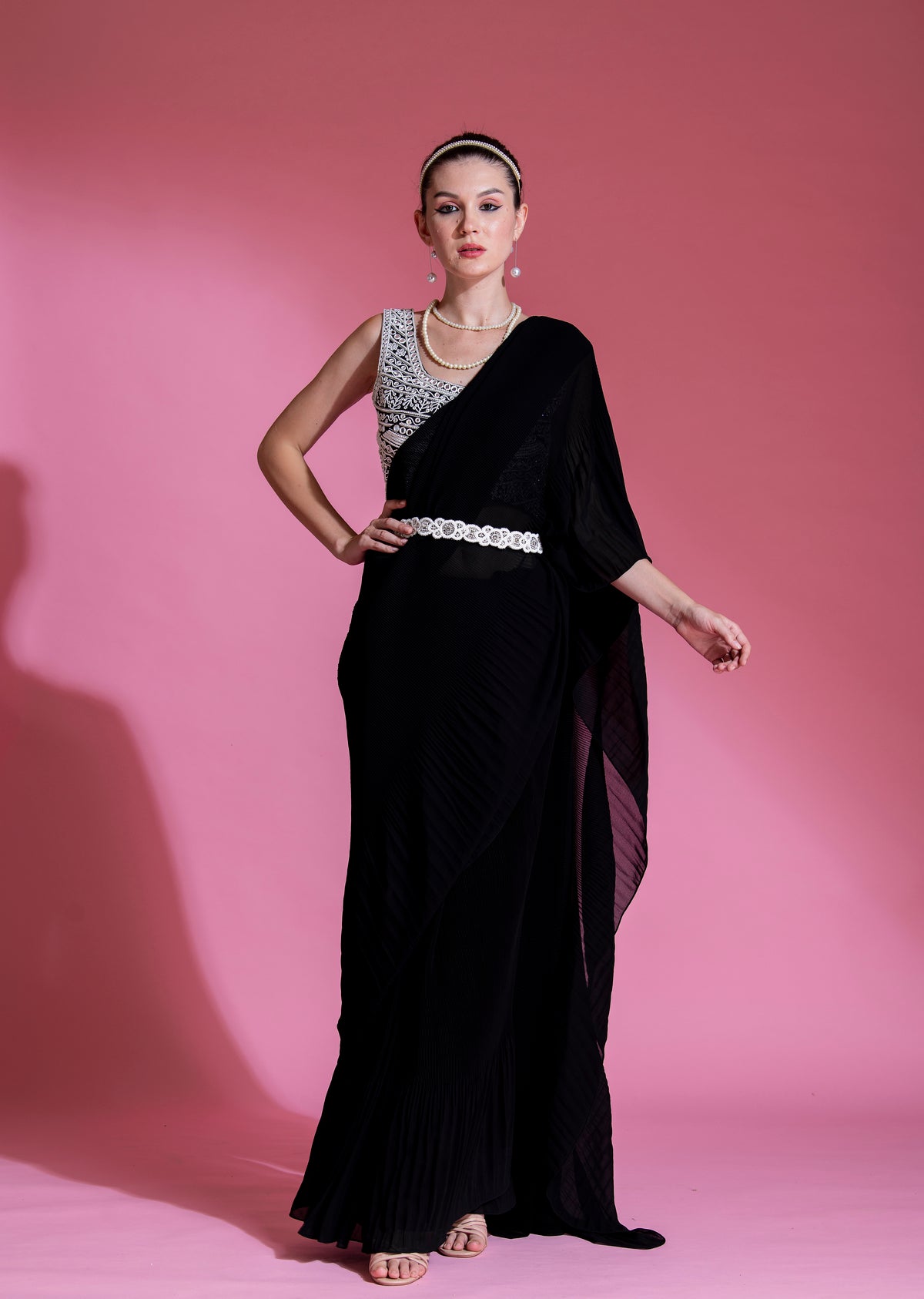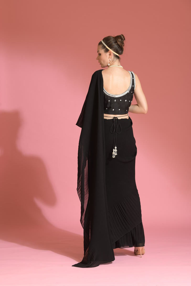 PRE-DRAPED MID NIGHT BLACK SAREE
