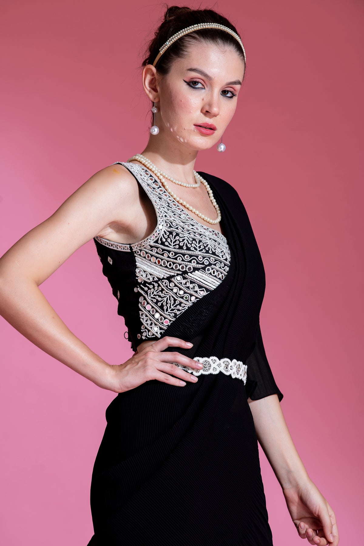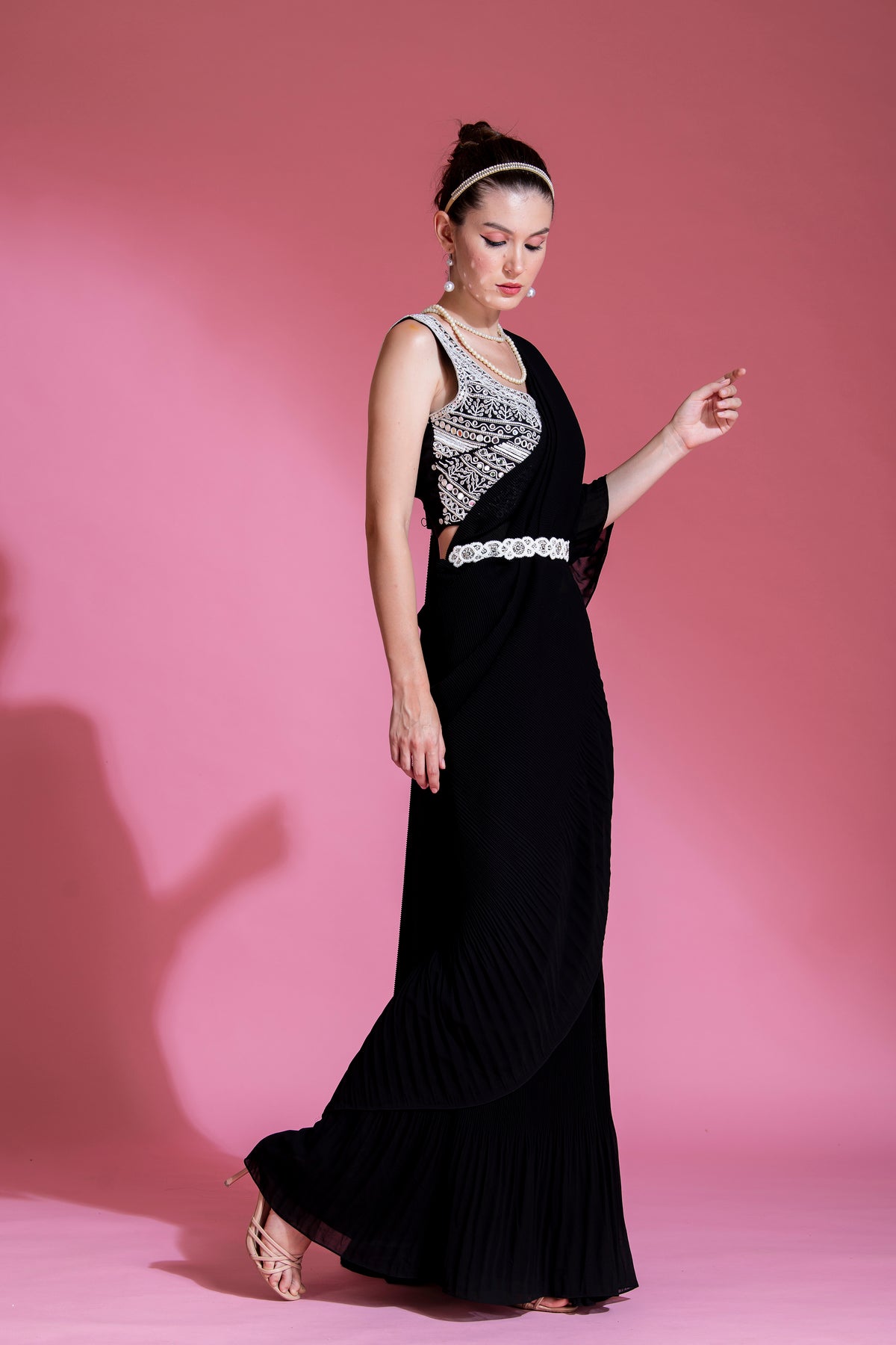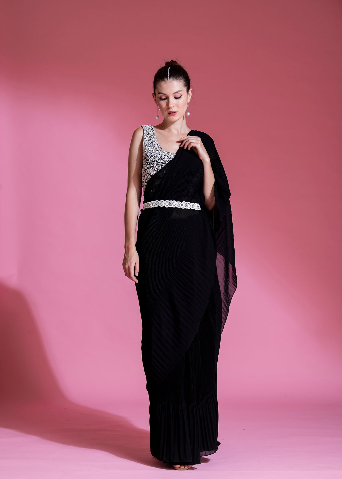 PRE-DRAPED MID NIGHT BLACK SAREE