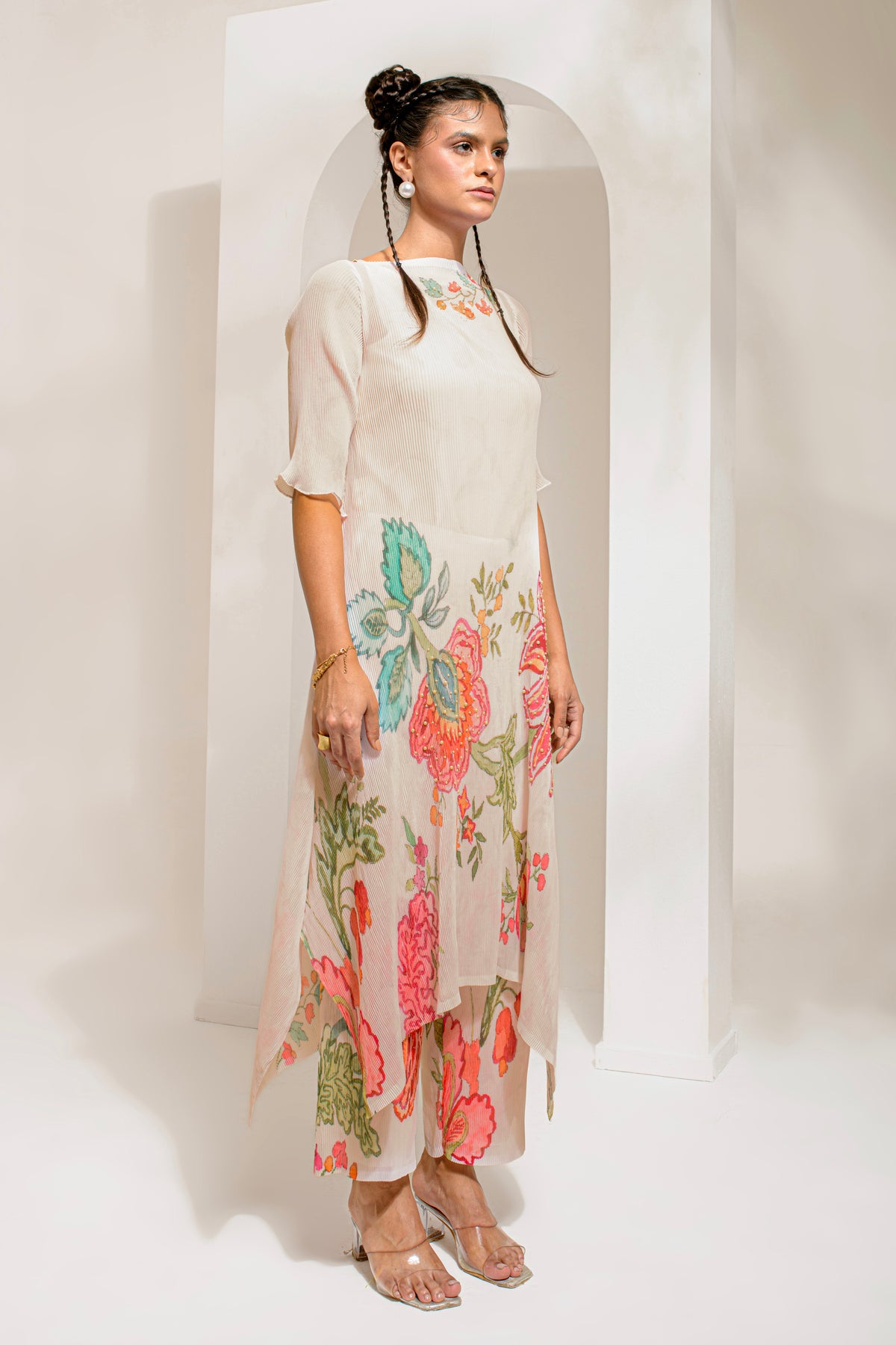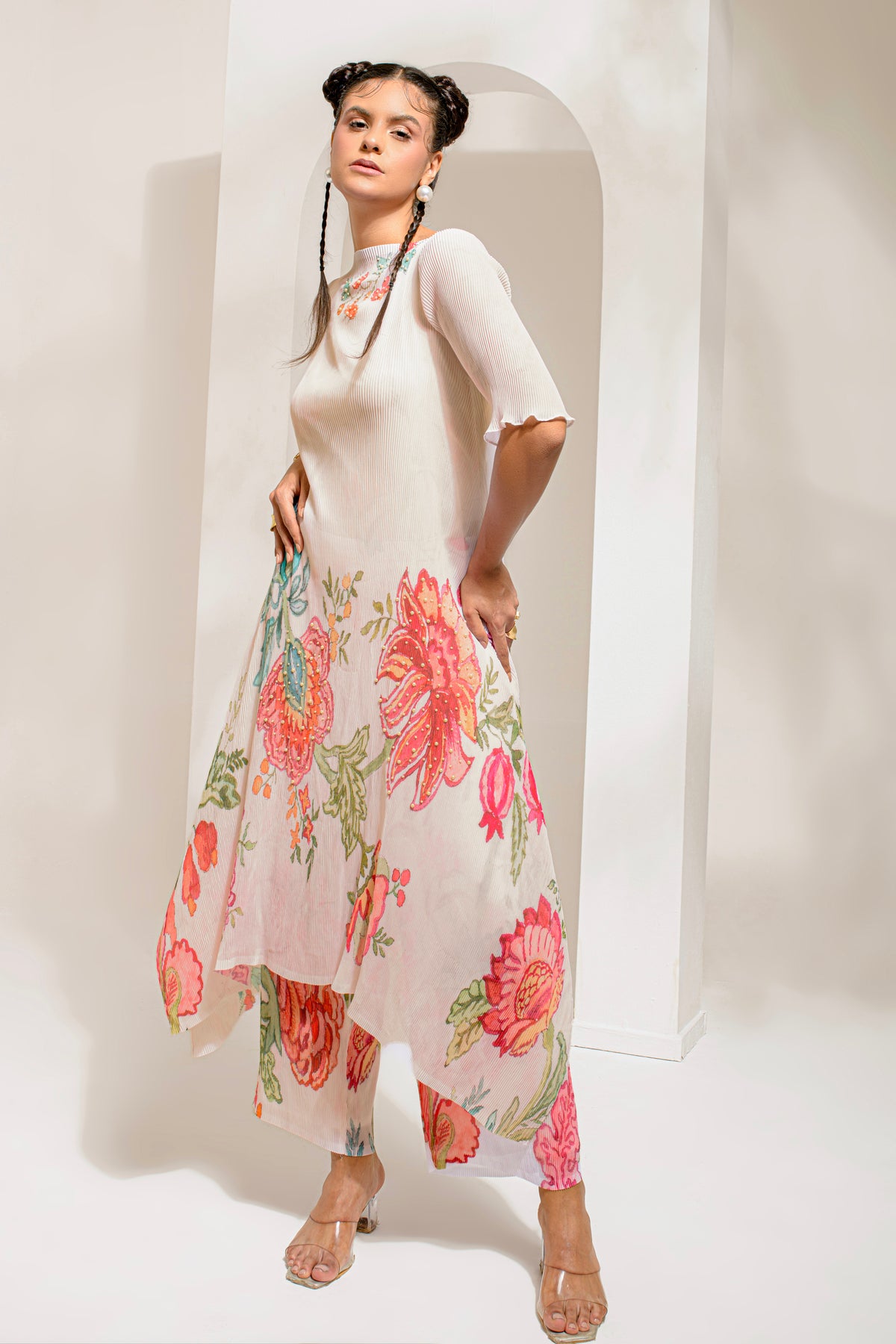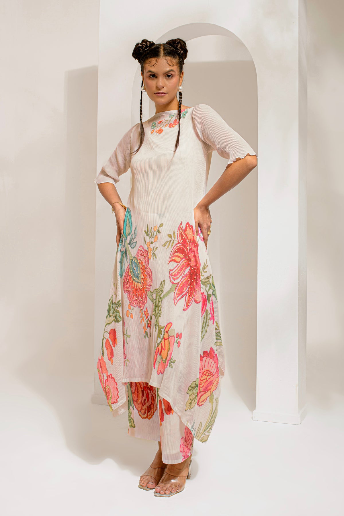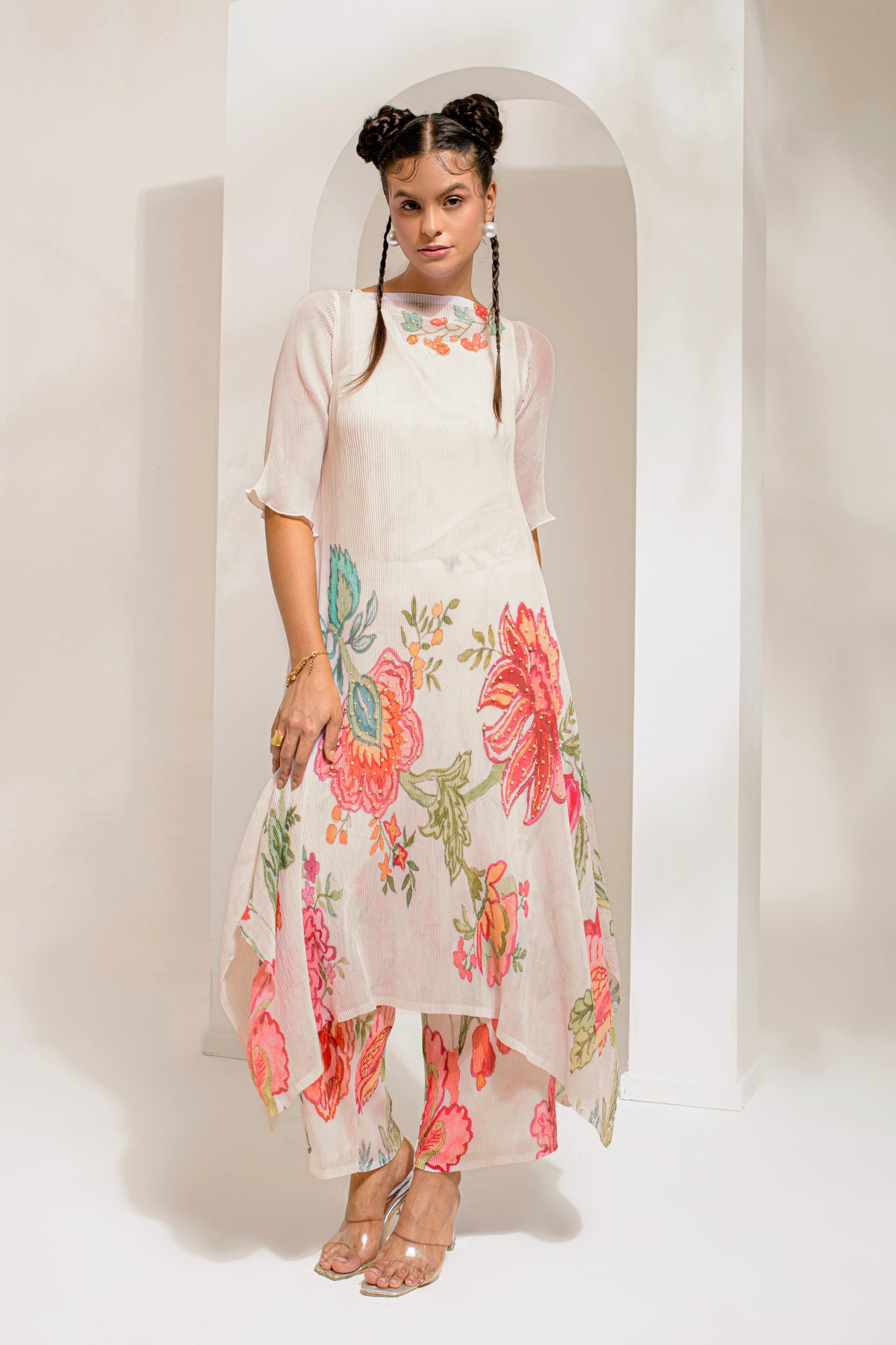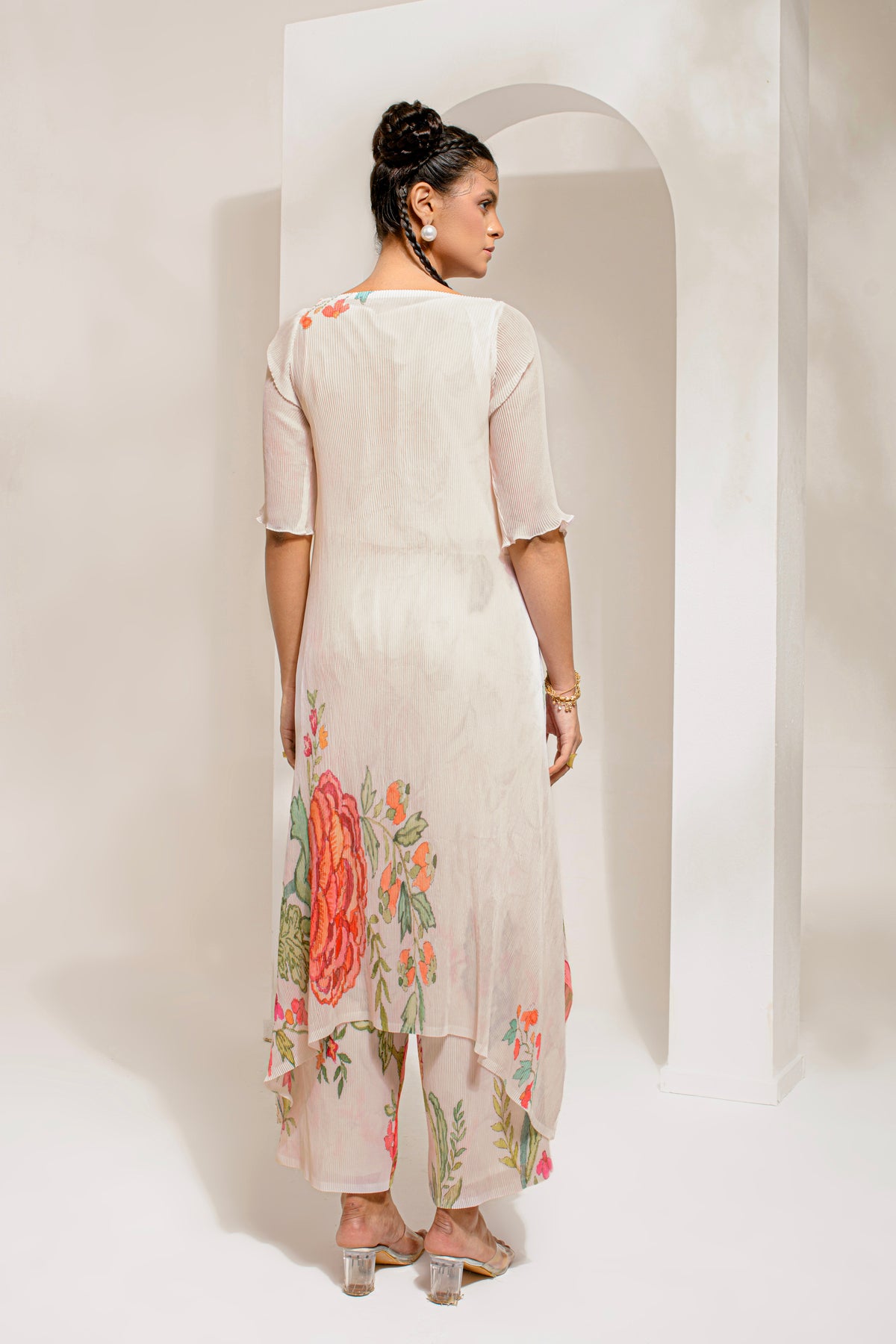Featuring a Ivory White Kaftan Kurta with Palazzo Pant. It is paired with Hand Embroidered Pearl work .