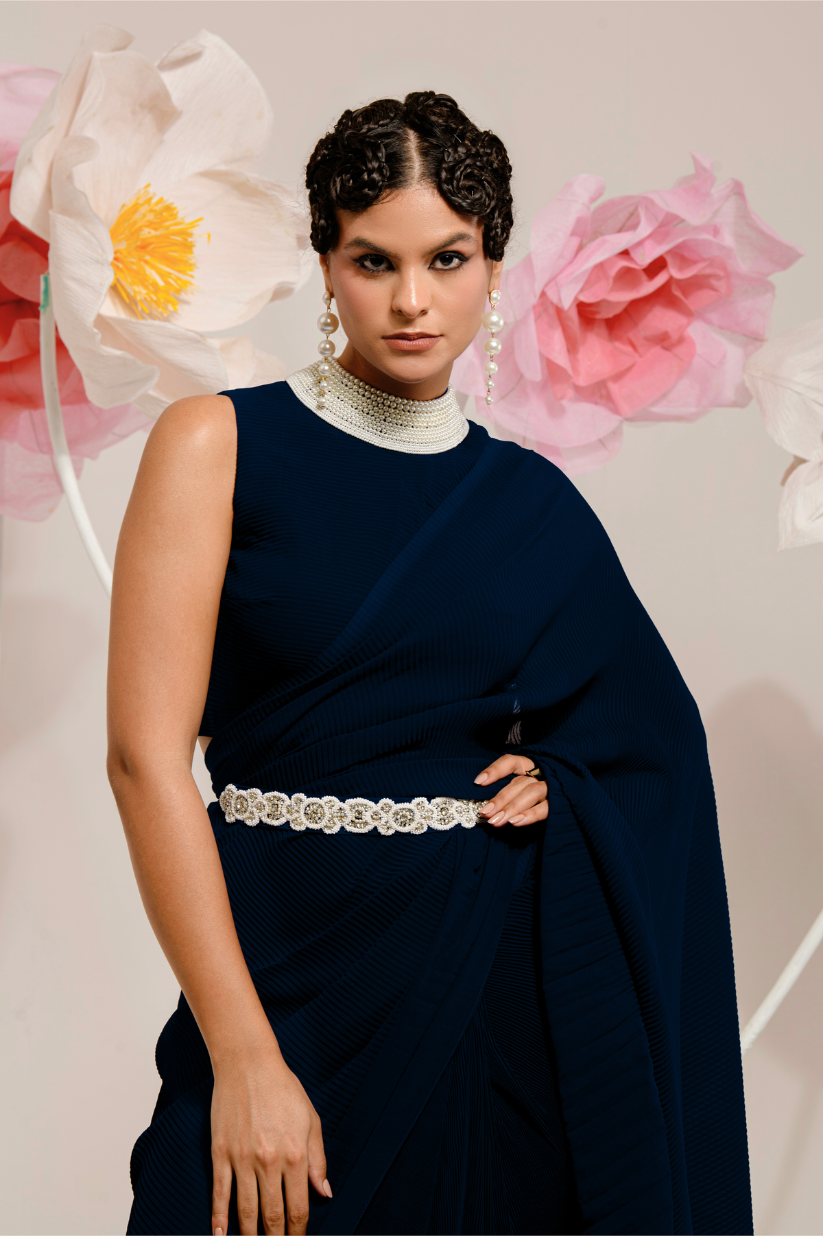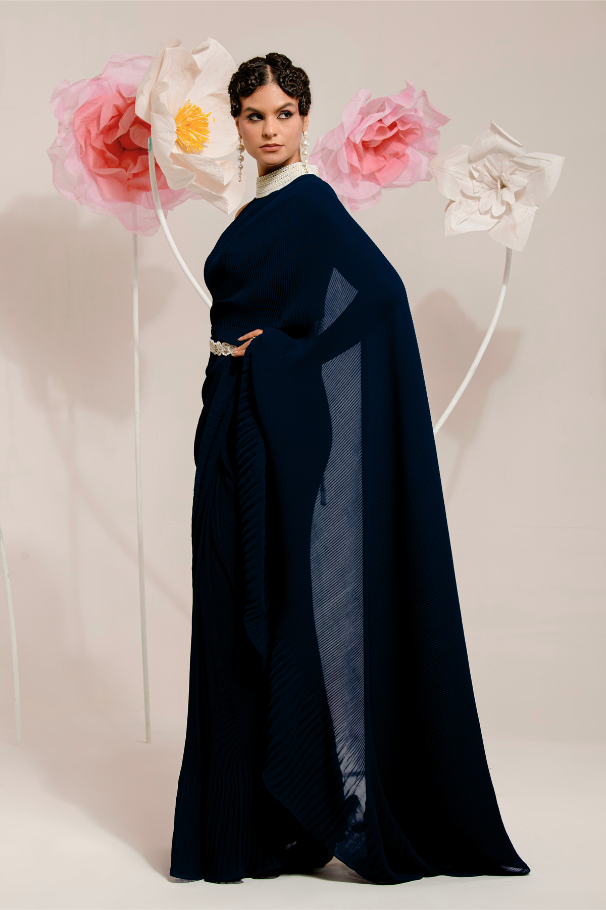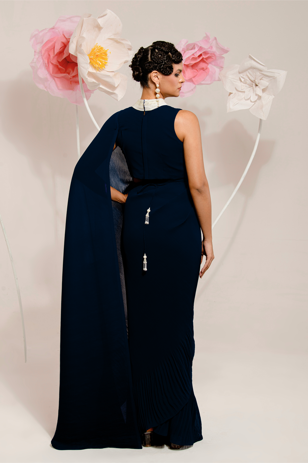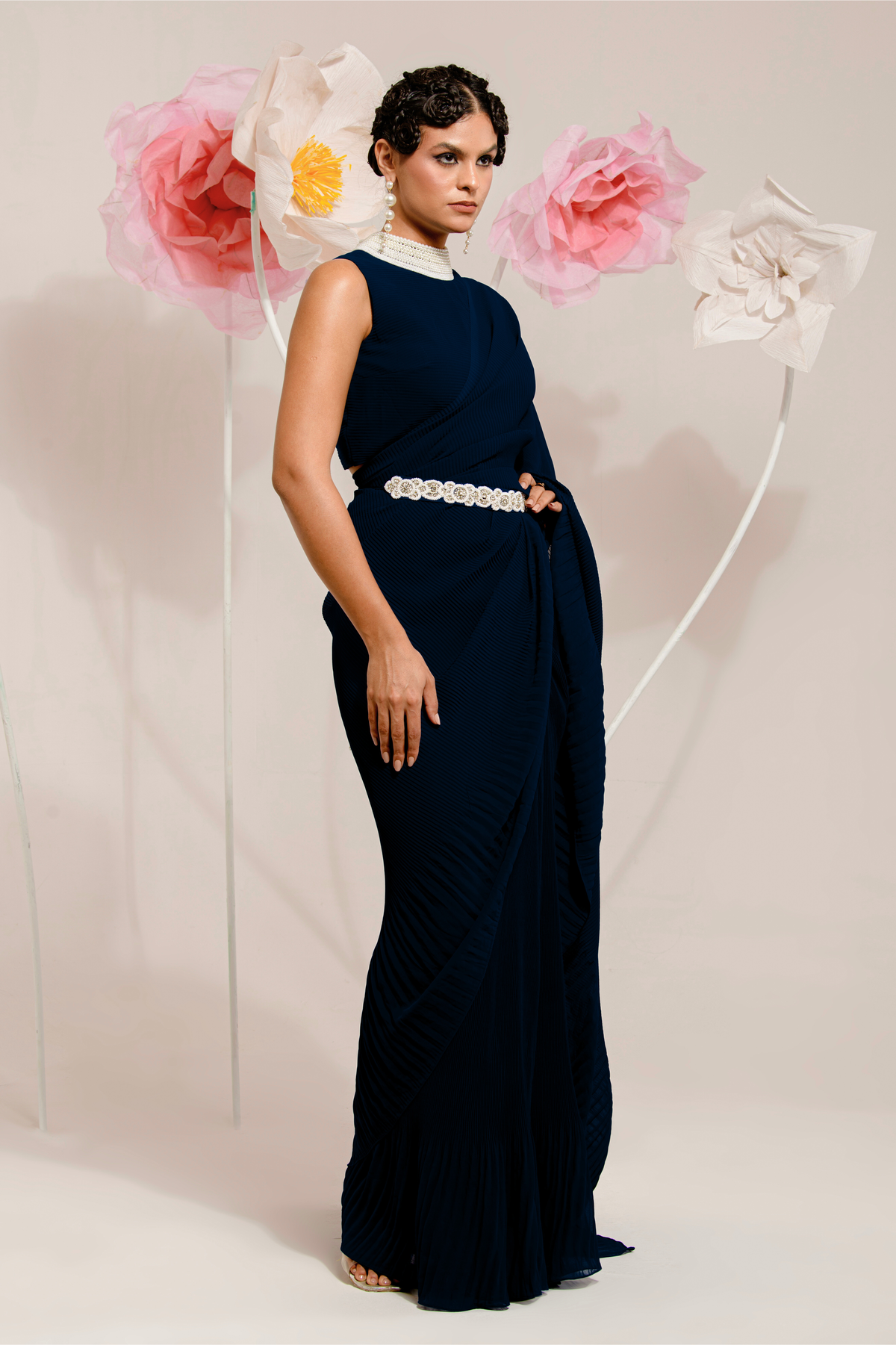 PRE-DRAPED NAVY BLUE SAREE