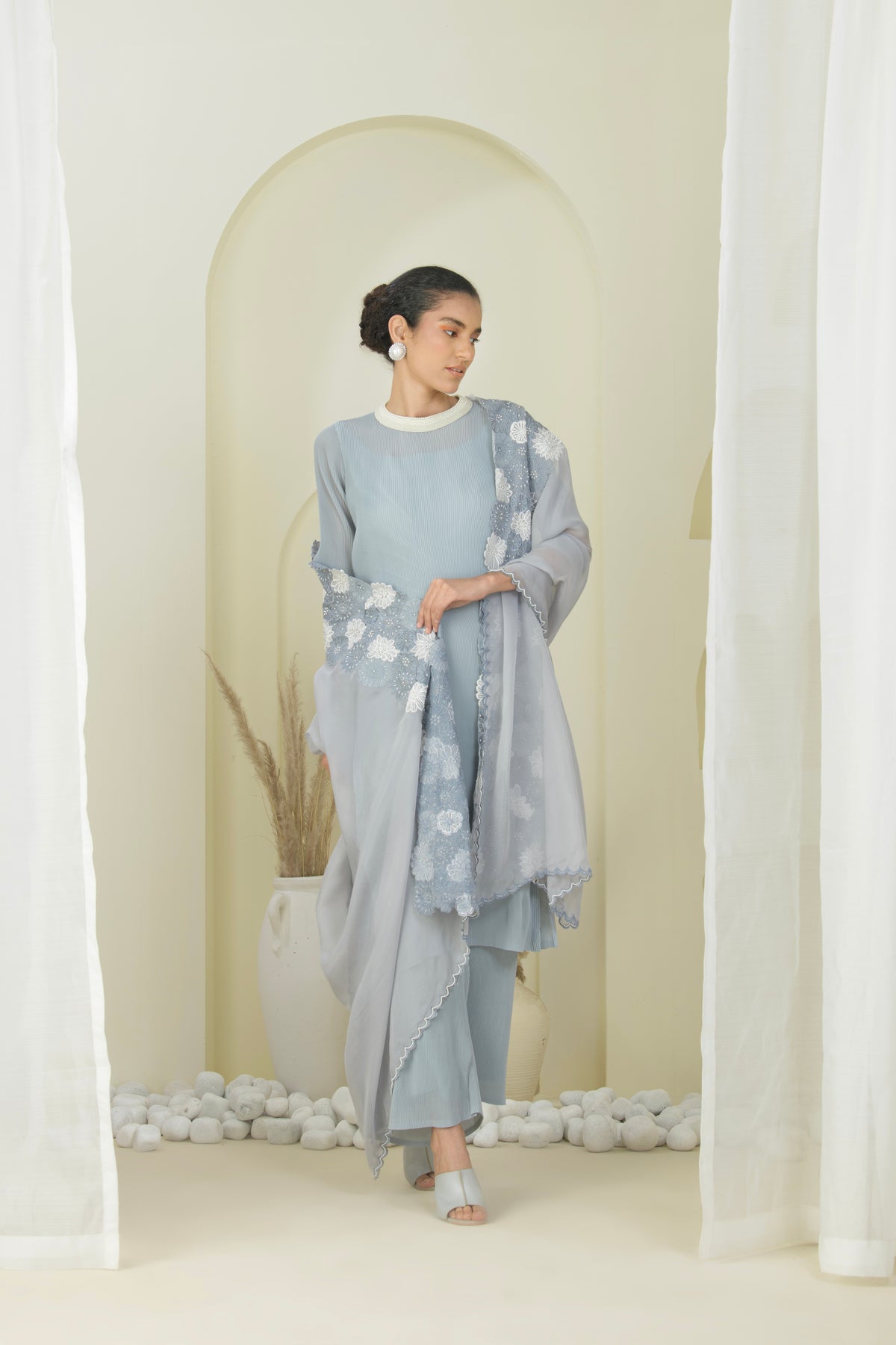 DOVE GREY SUIT WITH EMBRODED DUPATTA