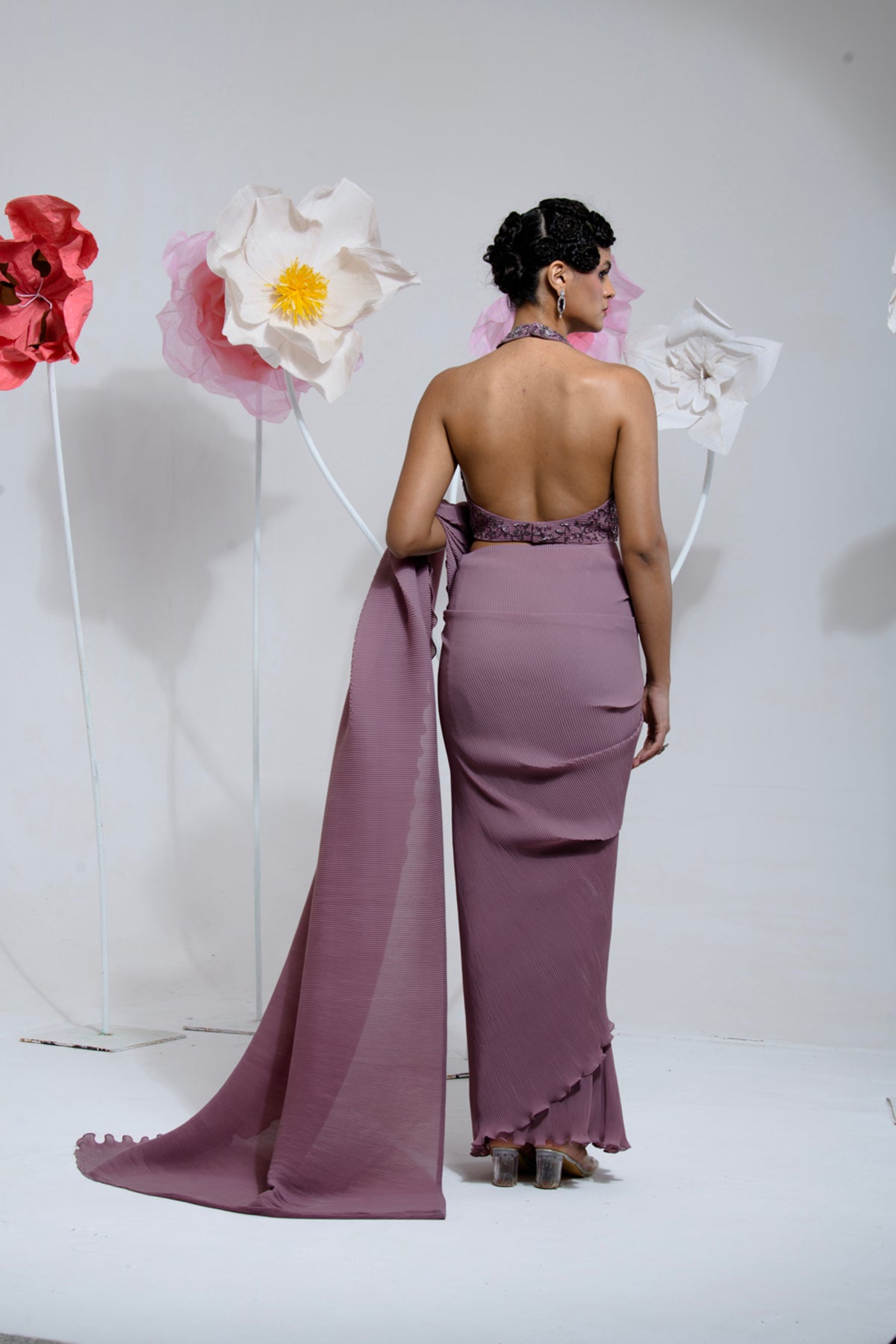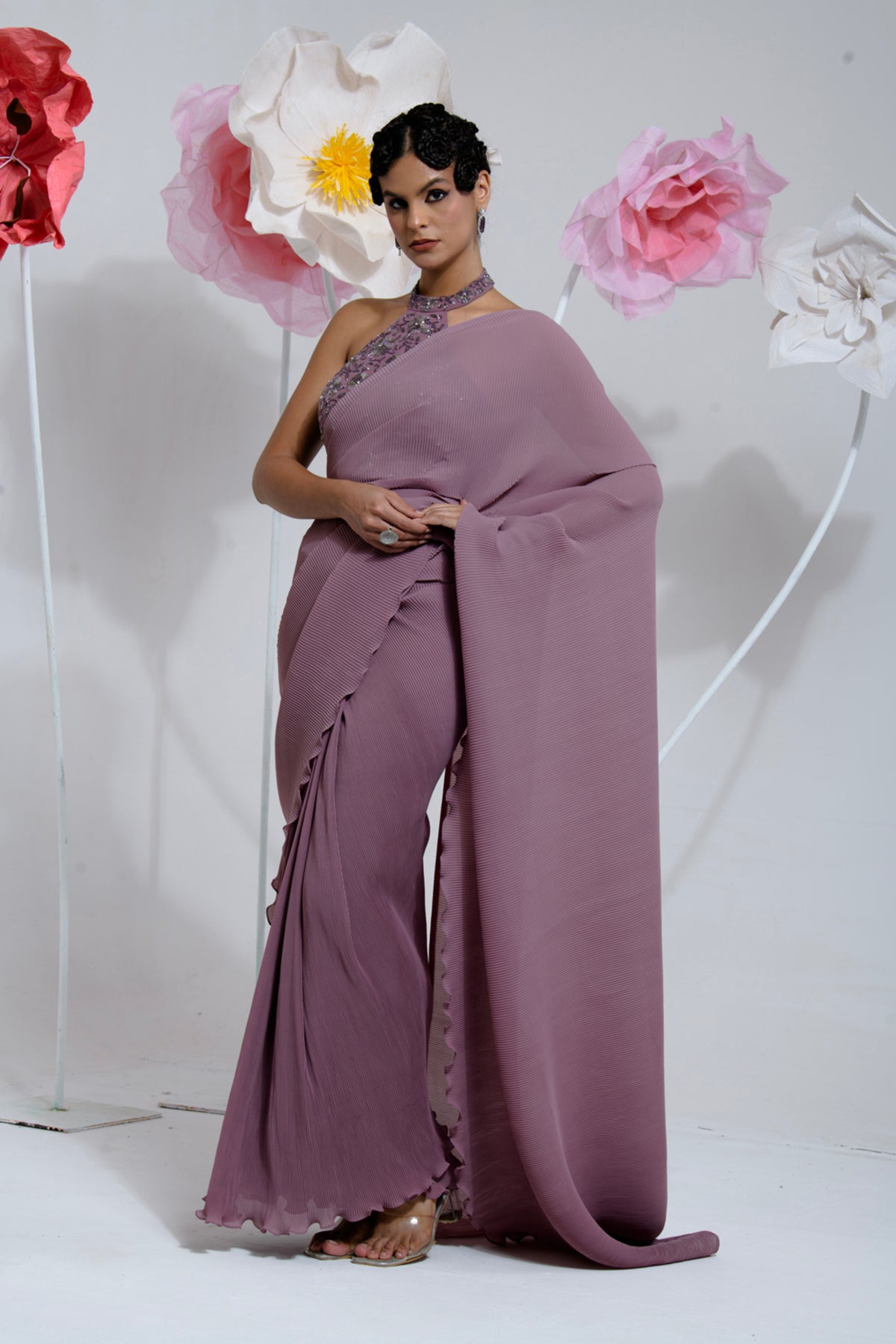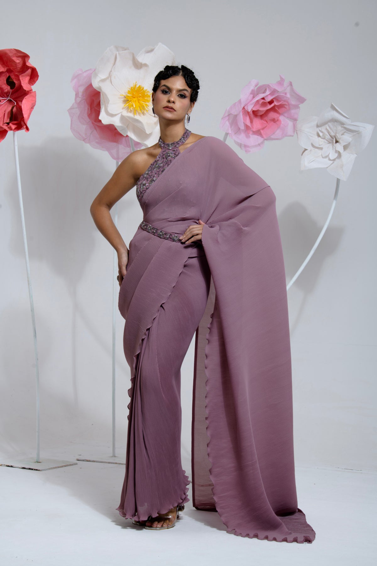 PRE-DRAPED DARK MAUVE SAREE