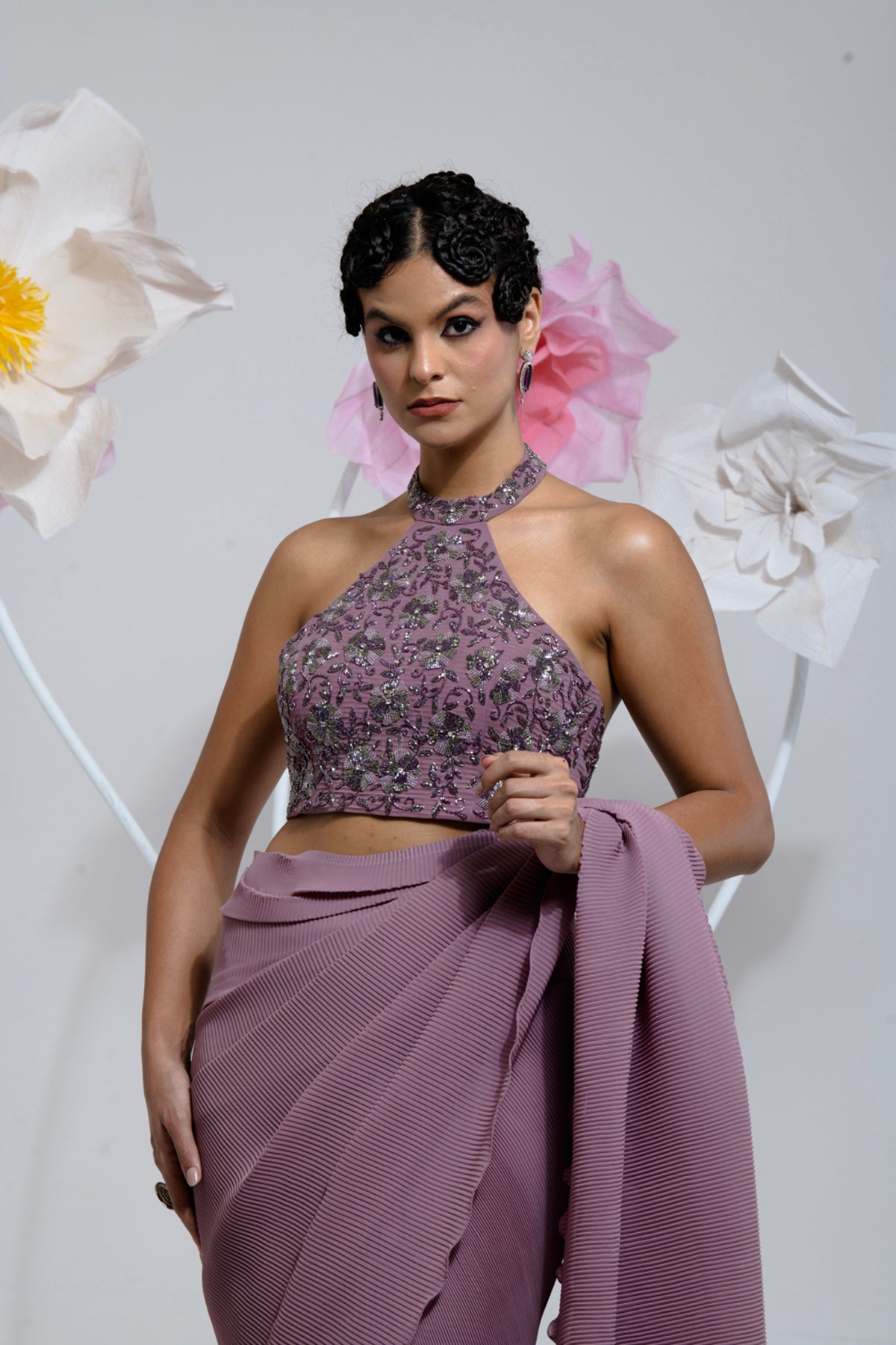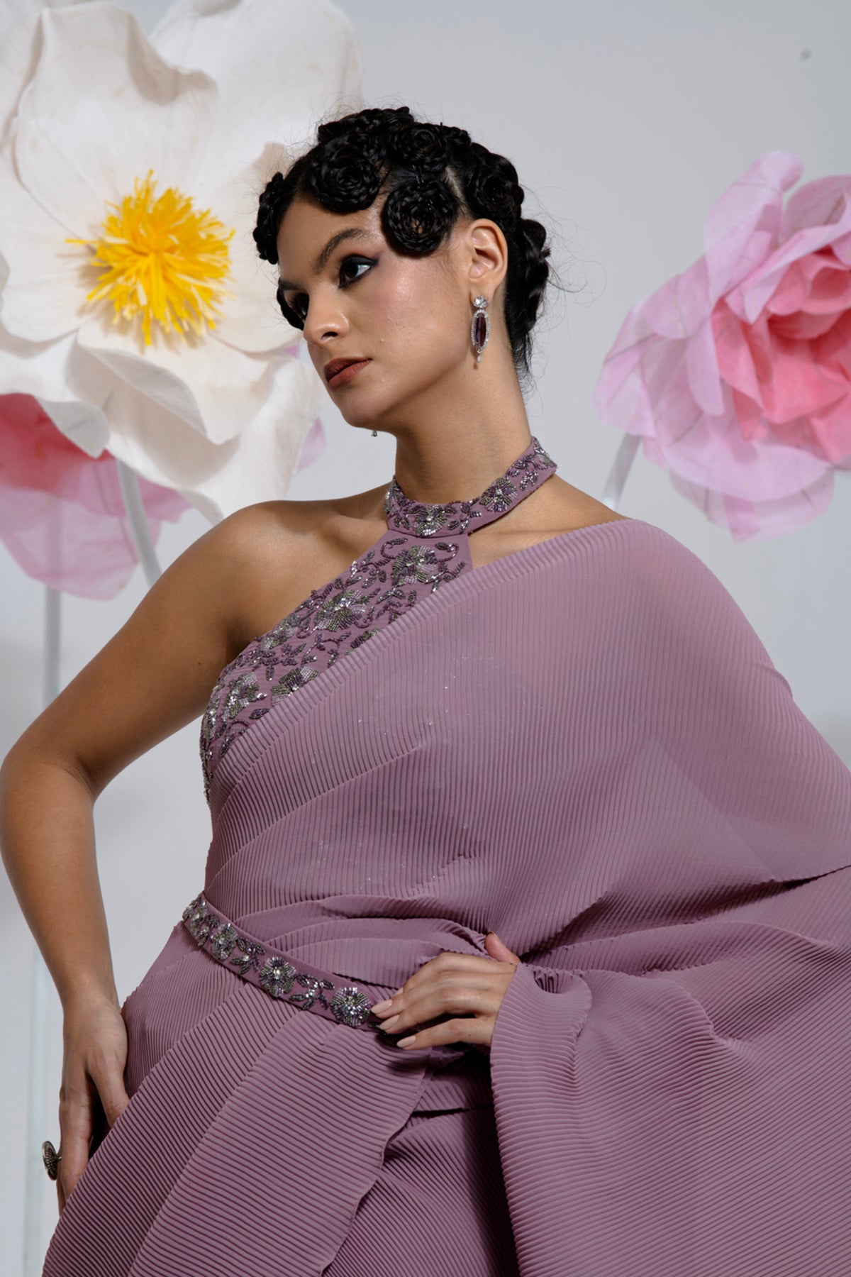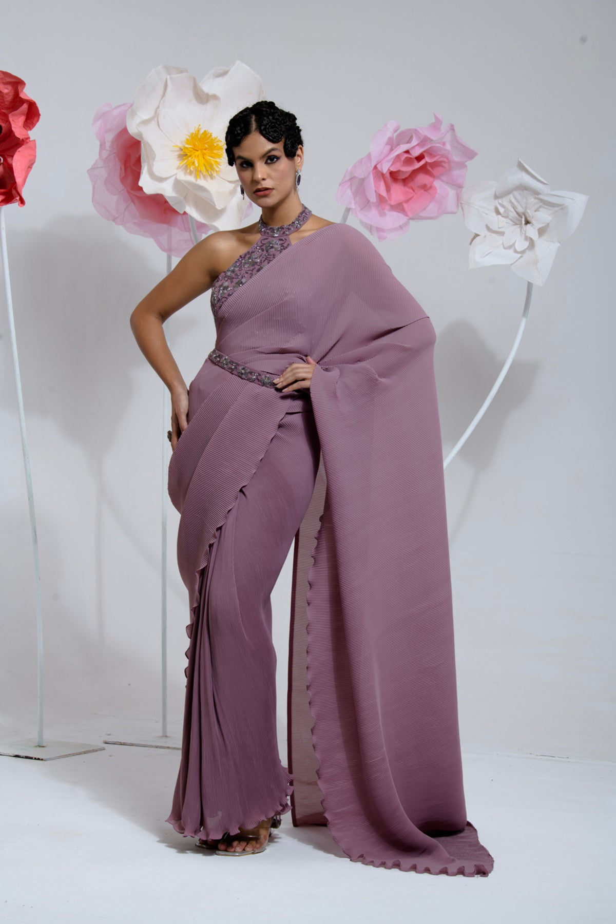 PRE-DRAPED DARK MAUVE SAREE