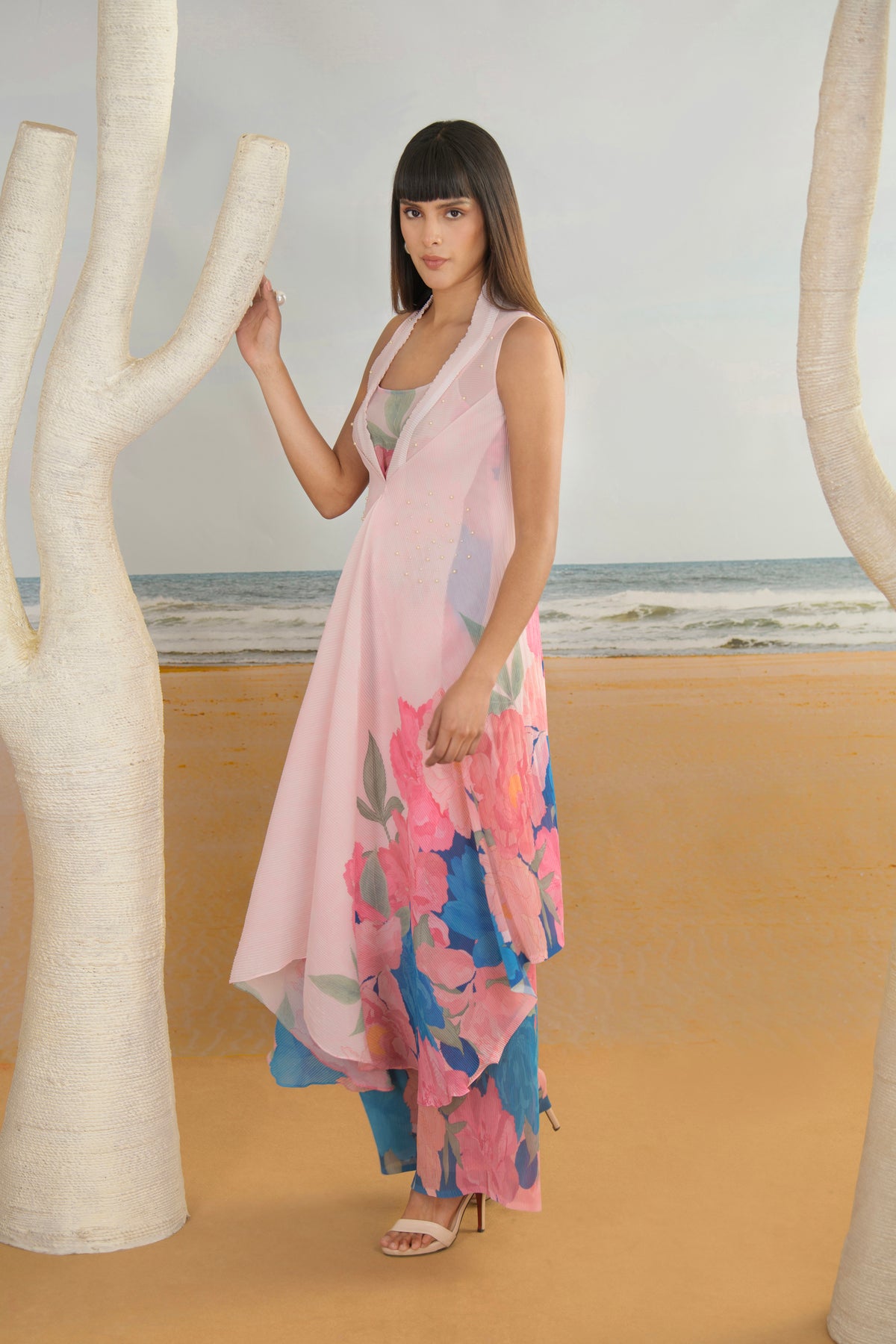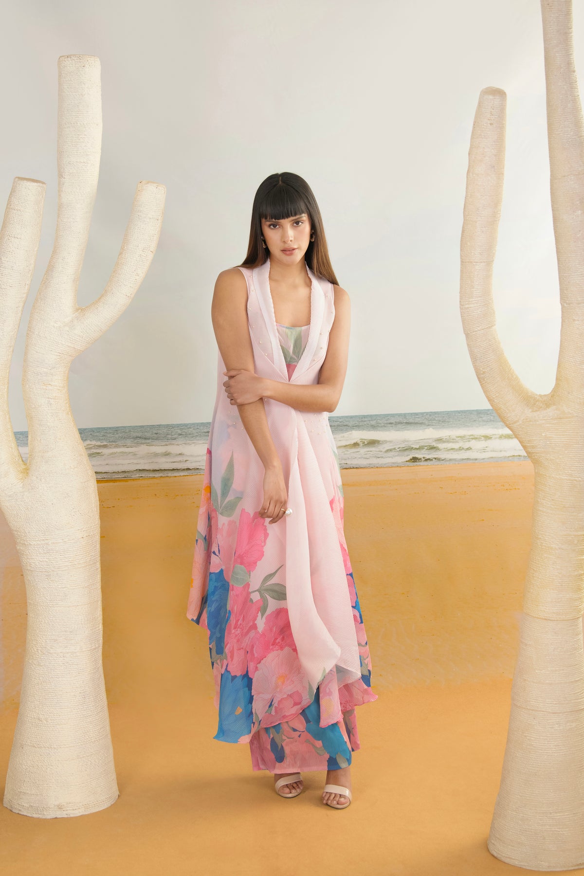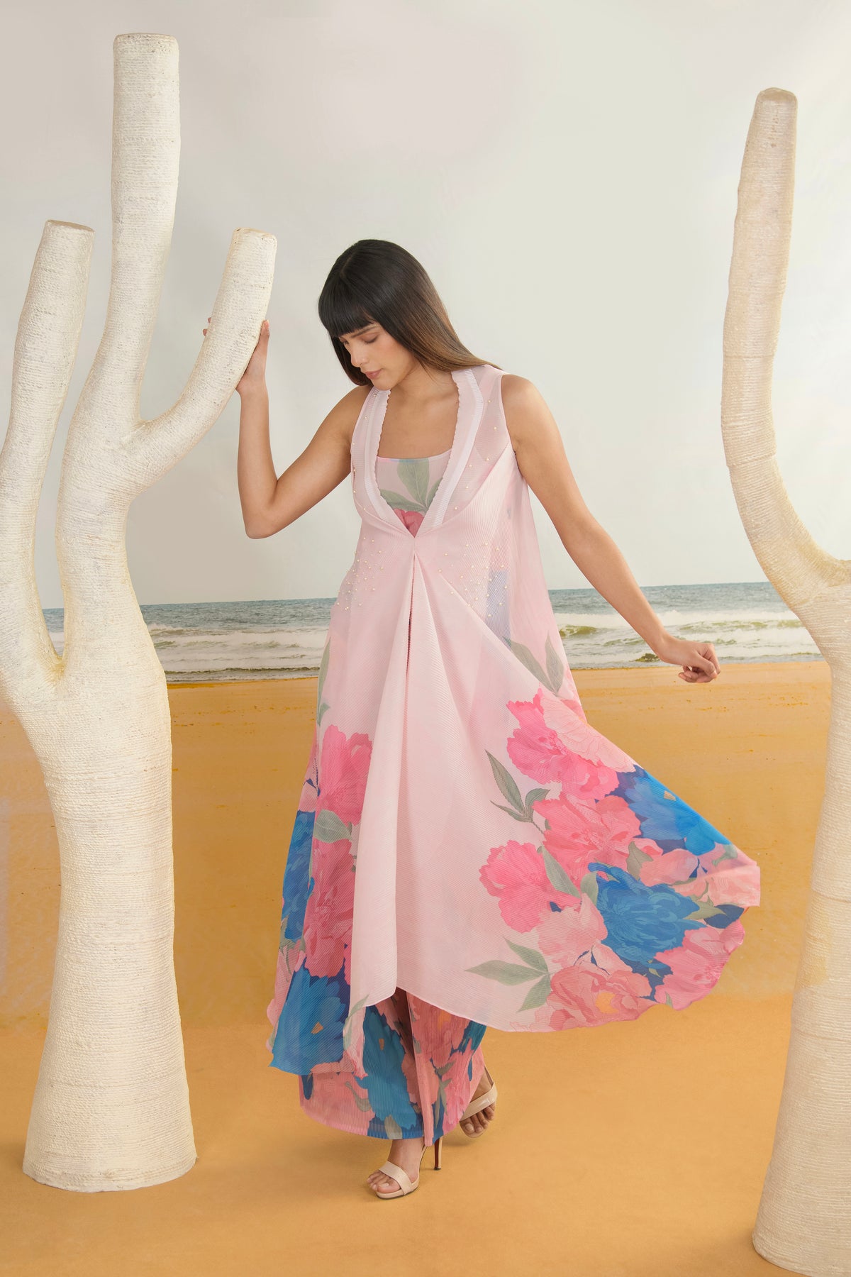 BABY PINK DIGITAL PRINT DRAPE KURTA SET