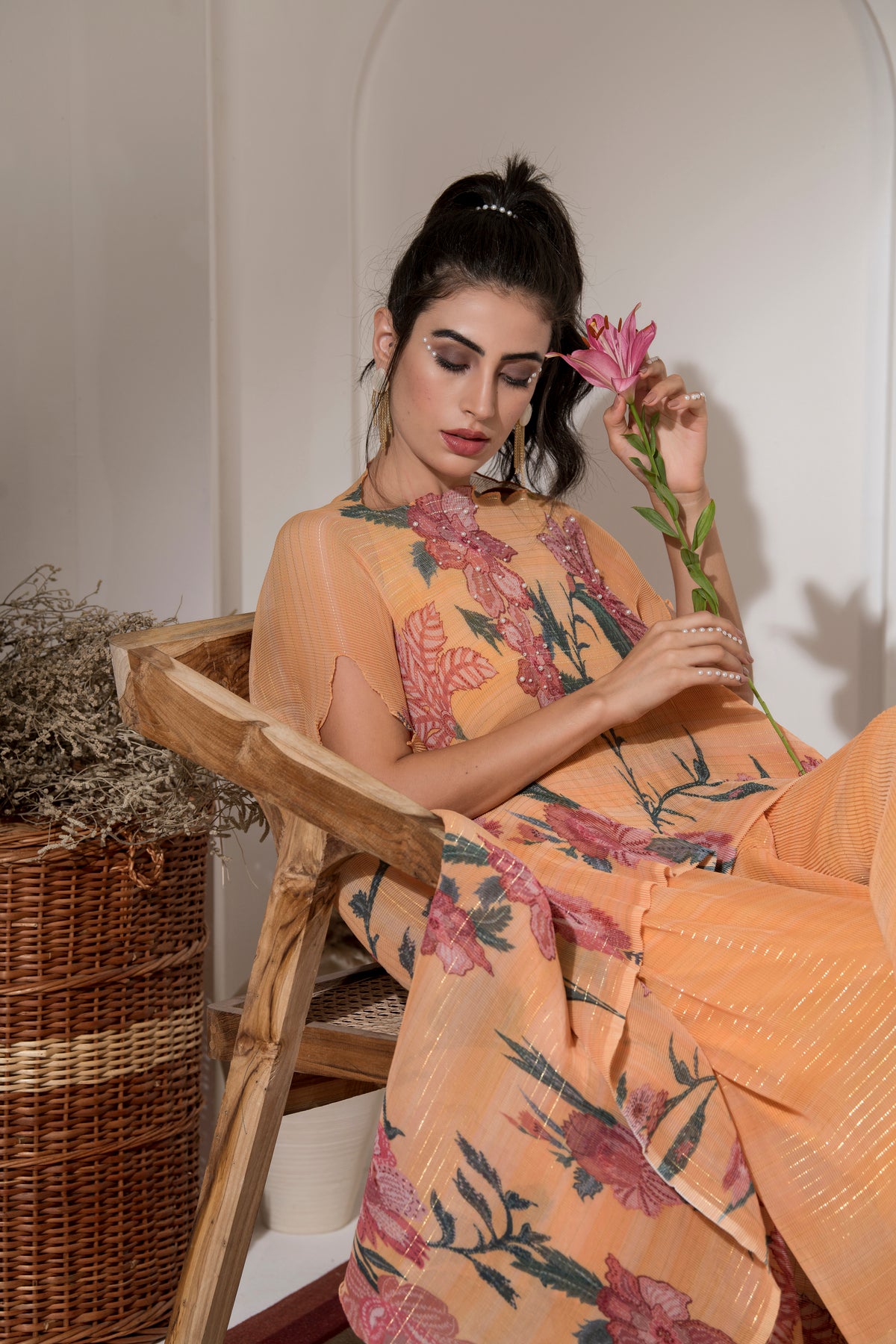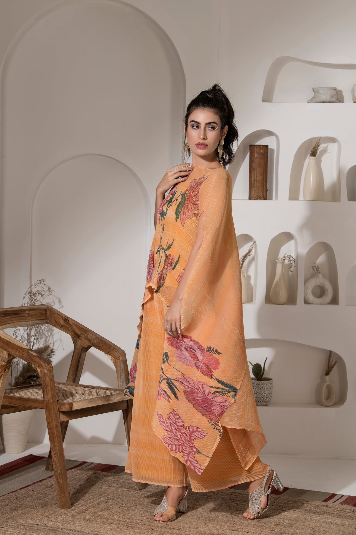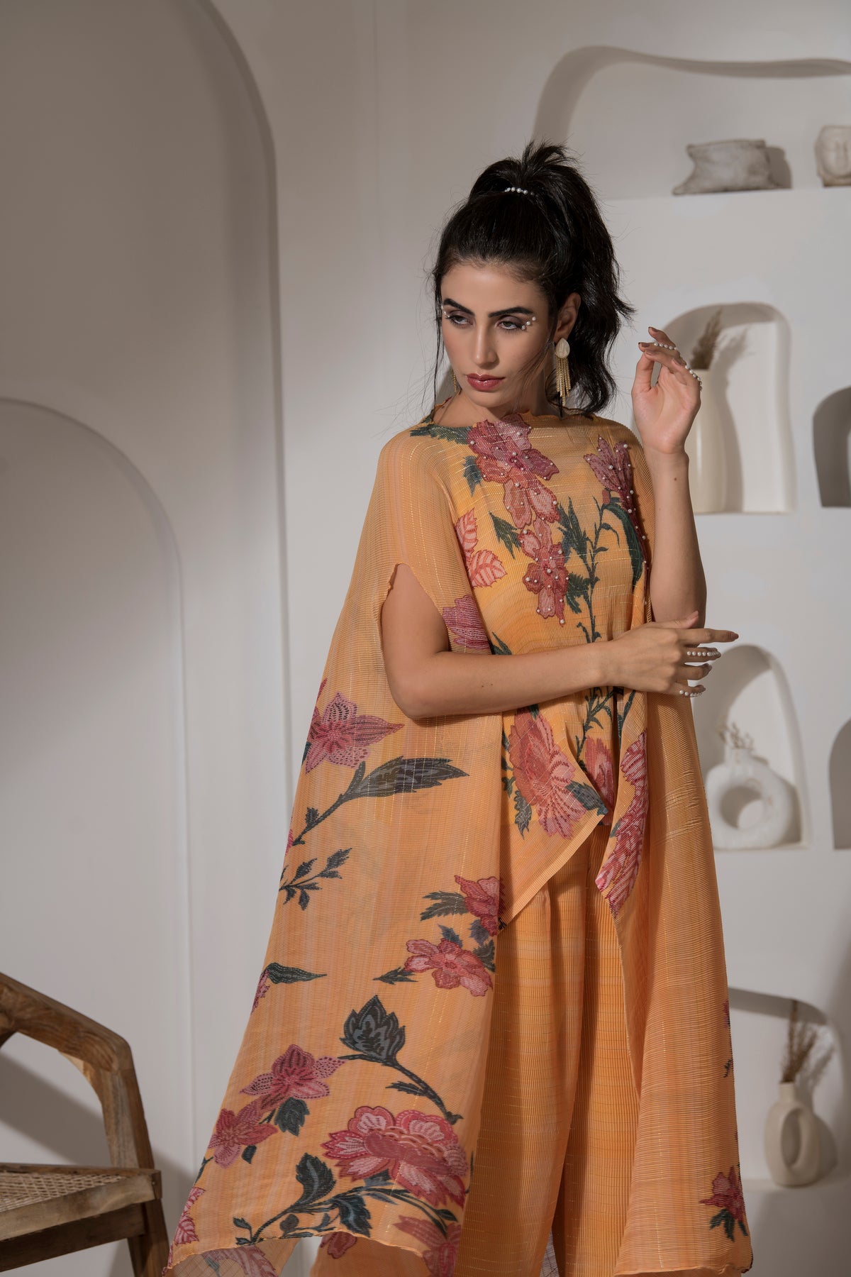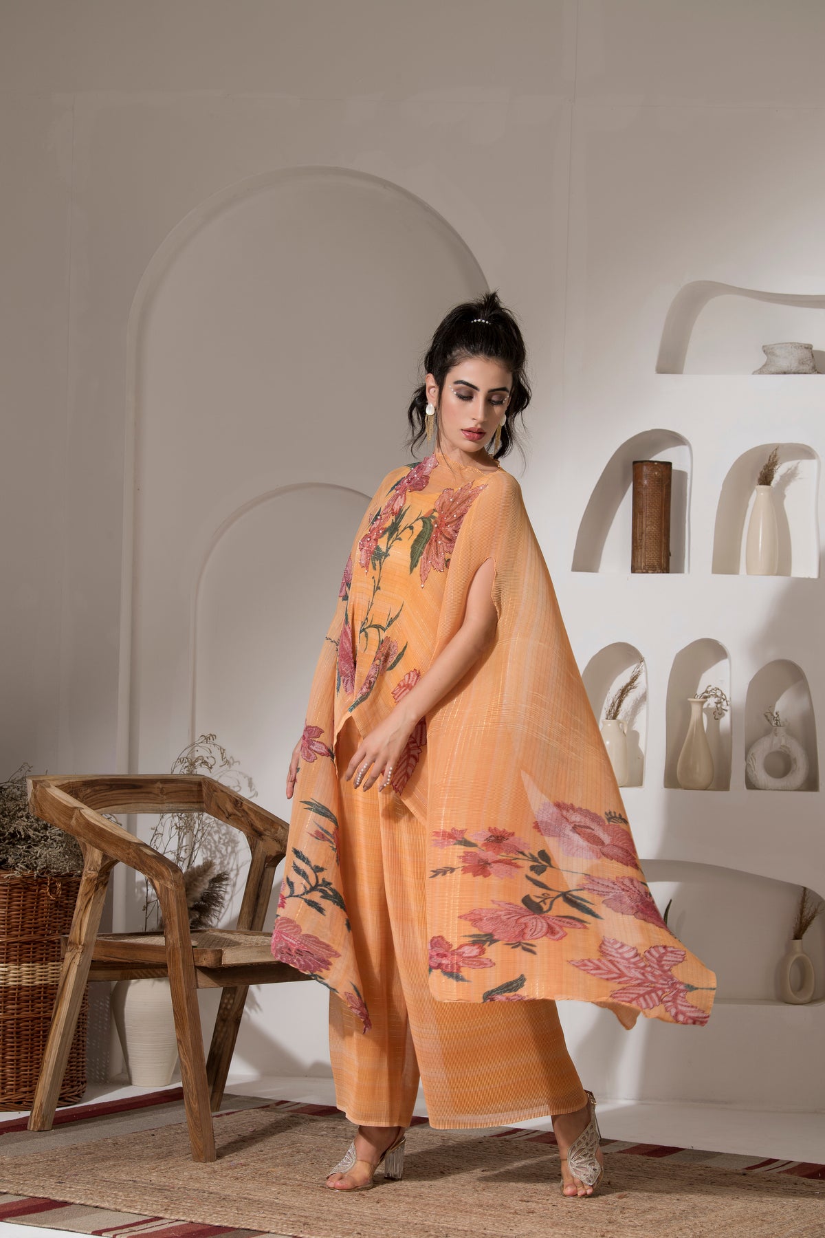 GOLDEN YELLOW FLOWER KAFTAN WITH PANT SET