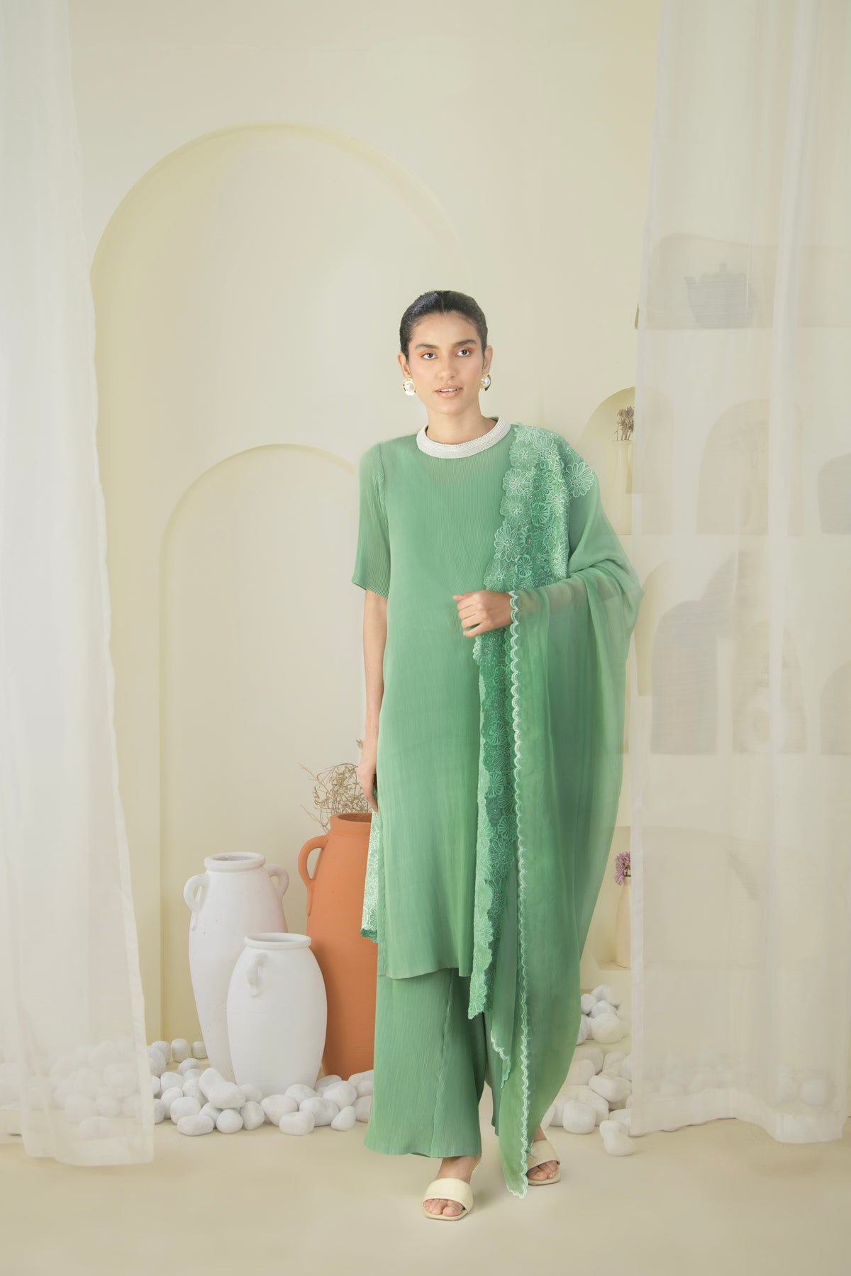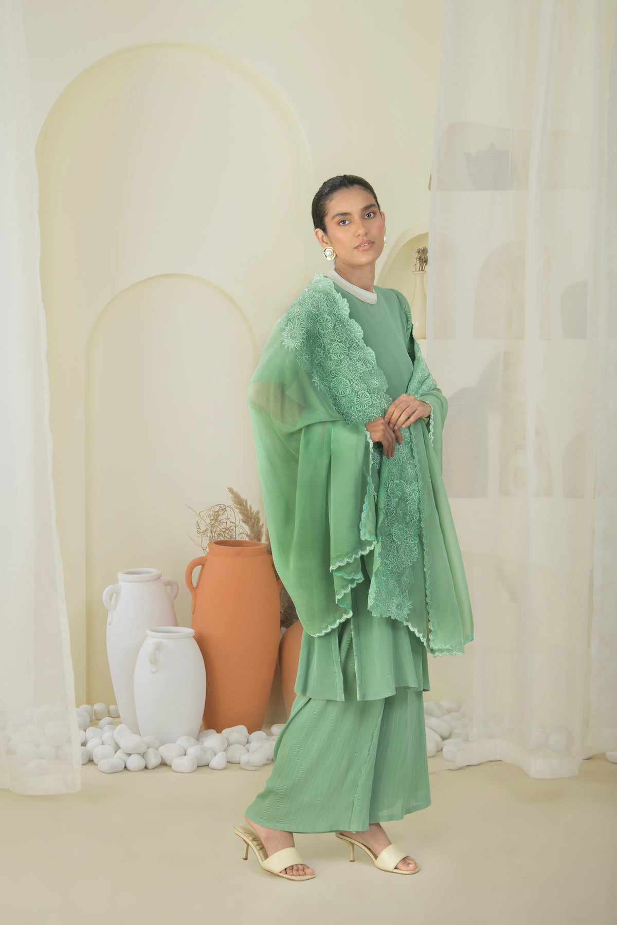 GRASSY GREEN SUIT WITH EMBRODED DUPATTA