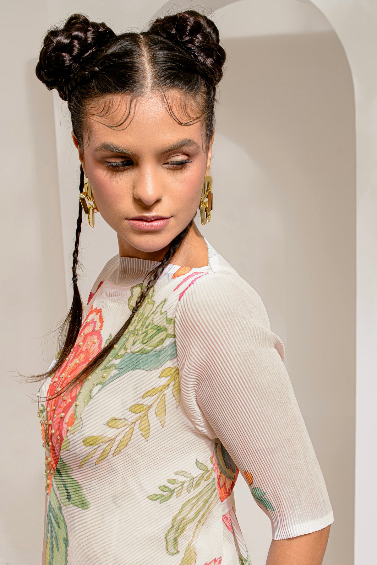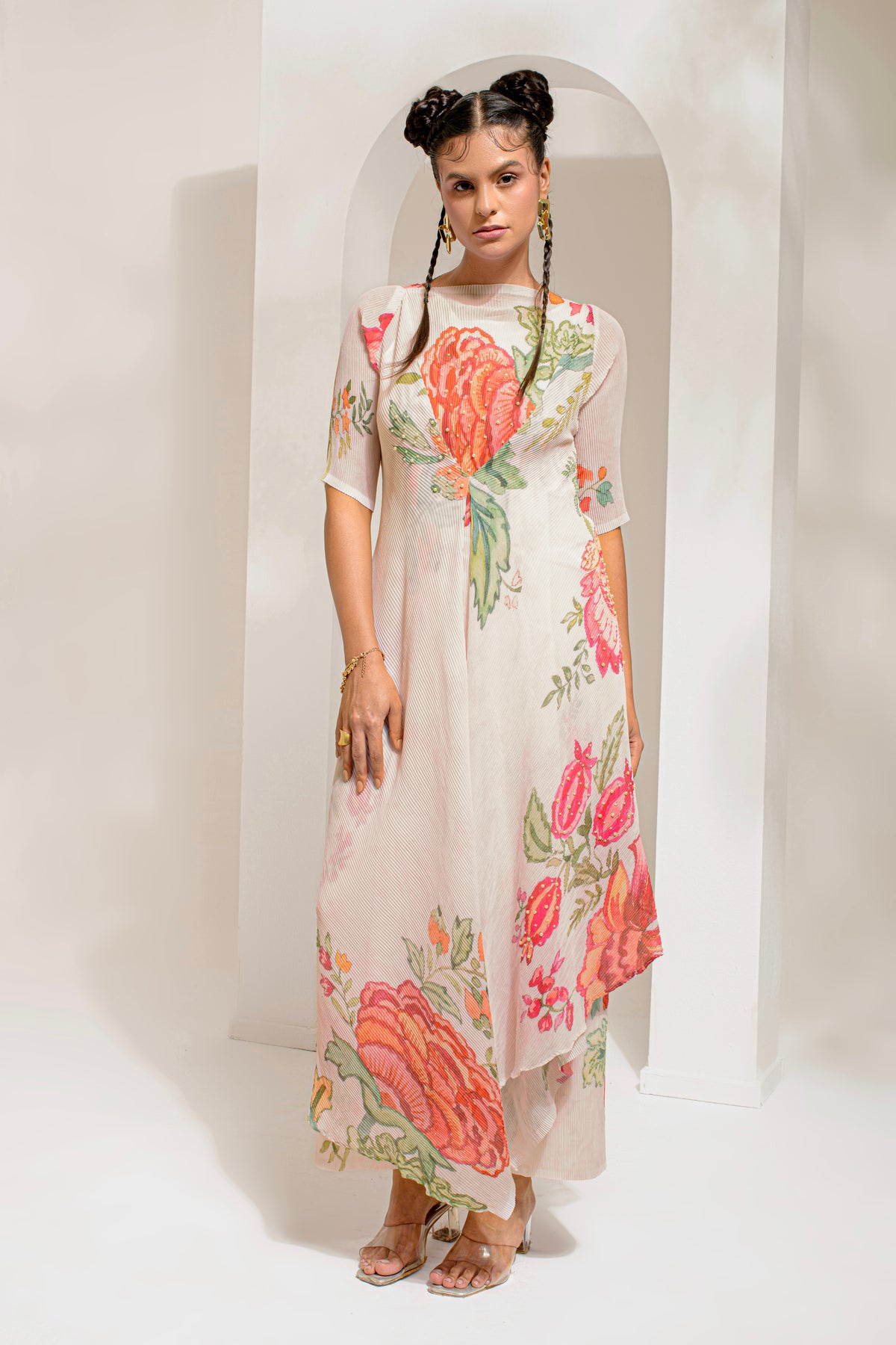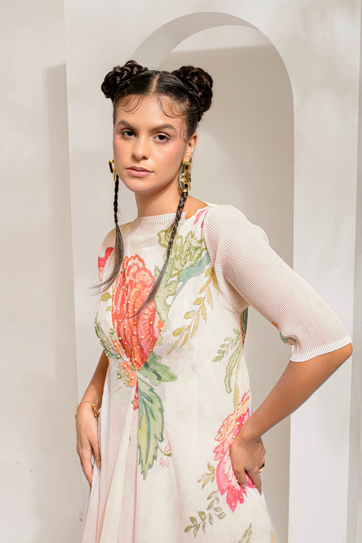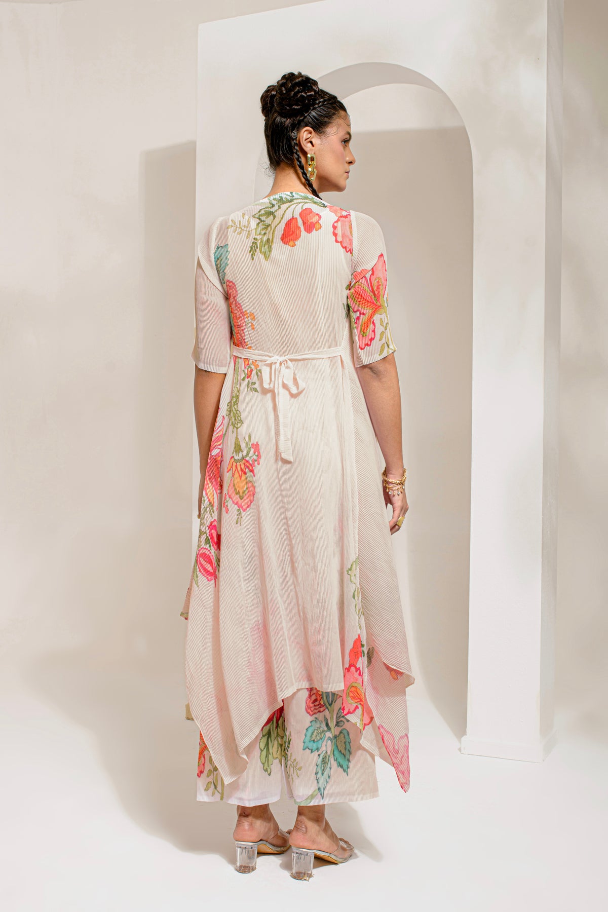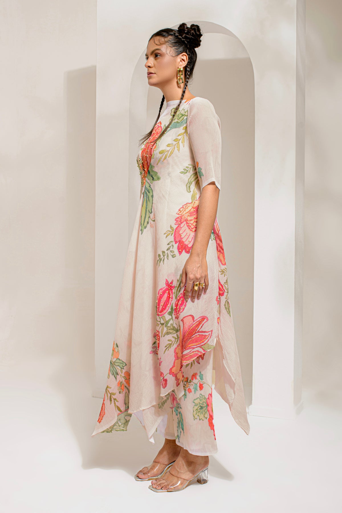 Featuring a Ivory White Kaftan Kurta with Palazzo Pant. It is paired with Hand-Embroidered Pearl work.