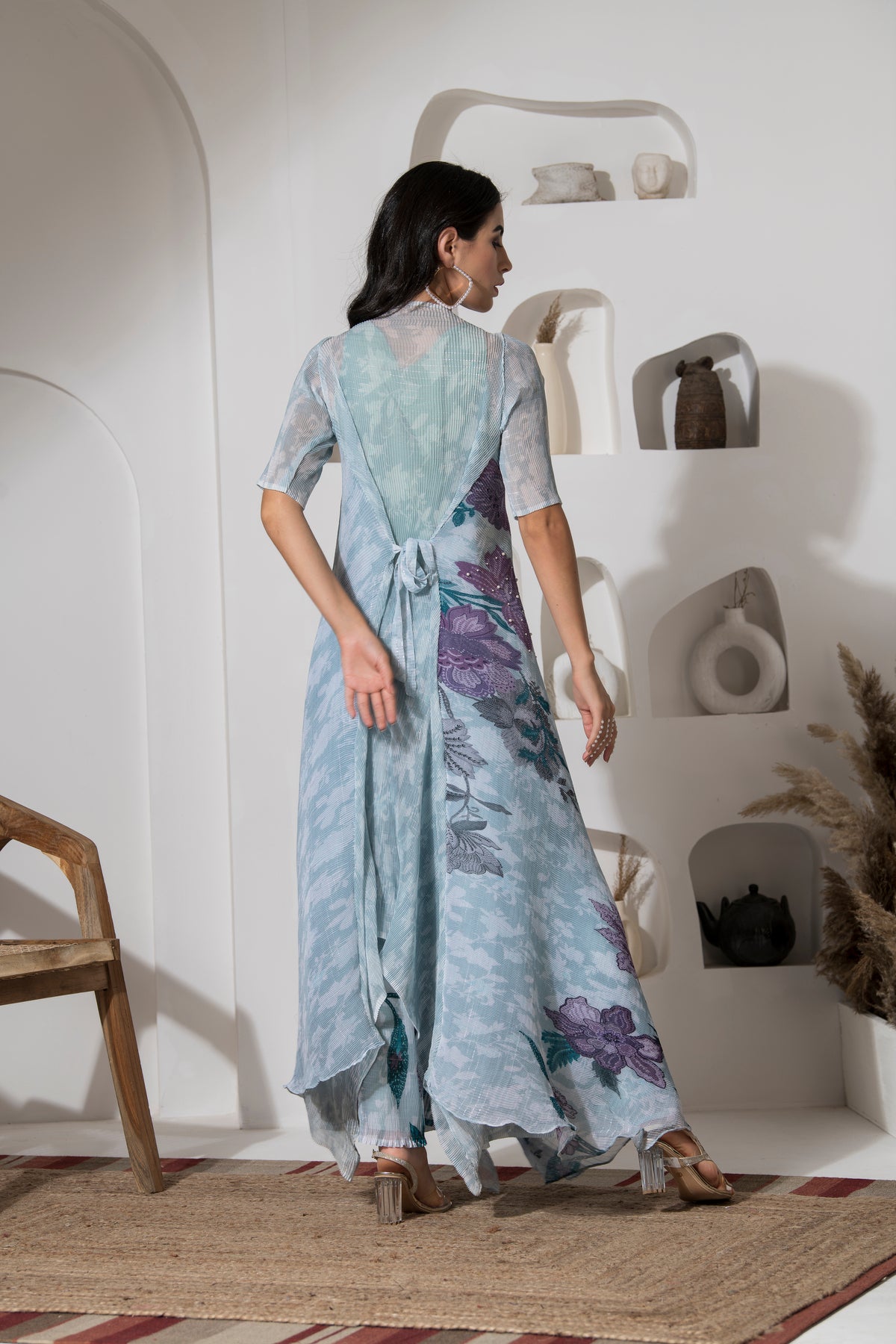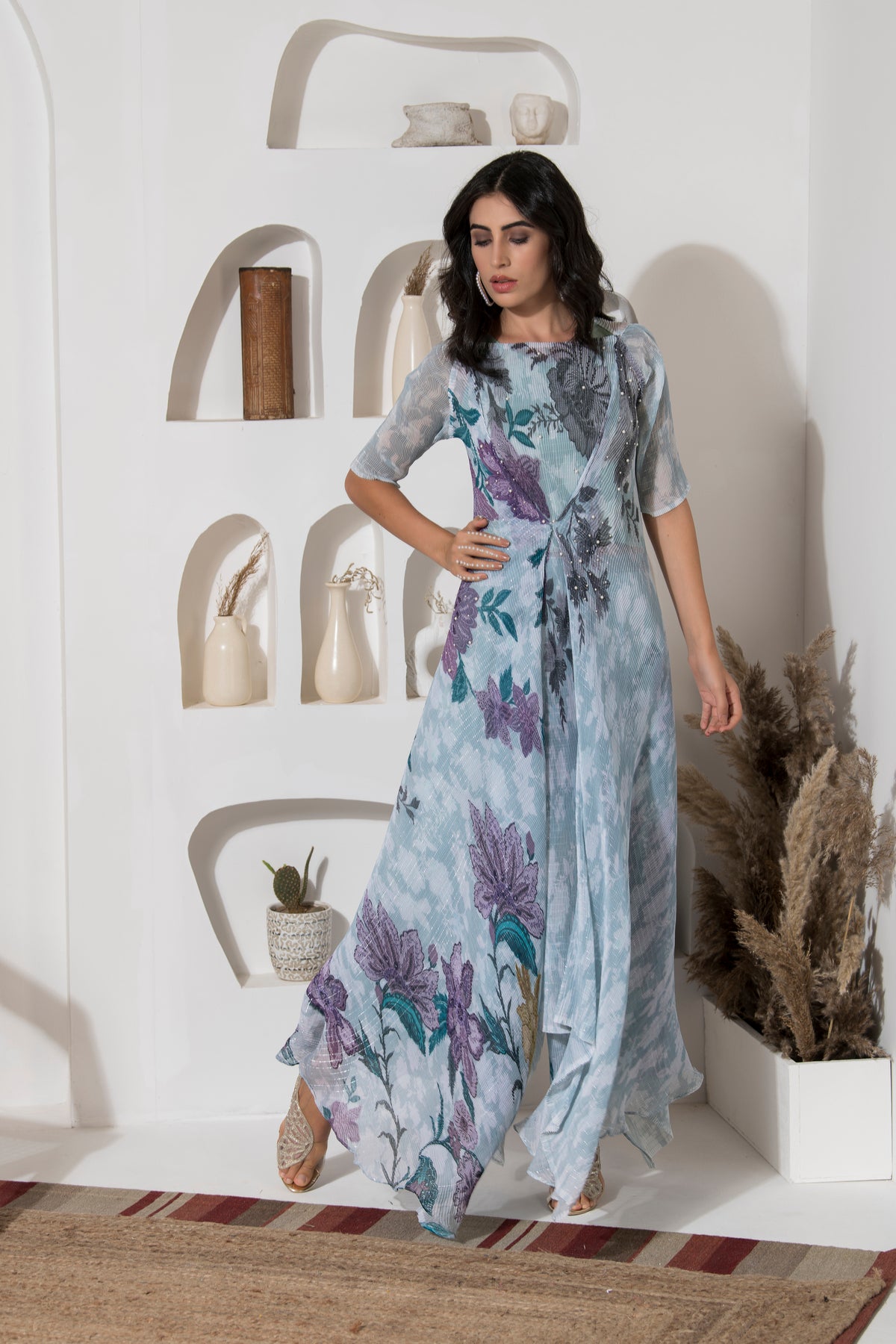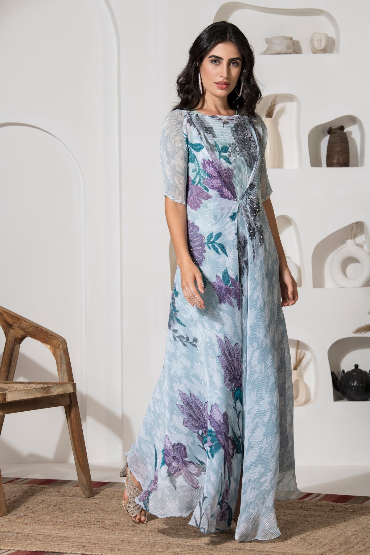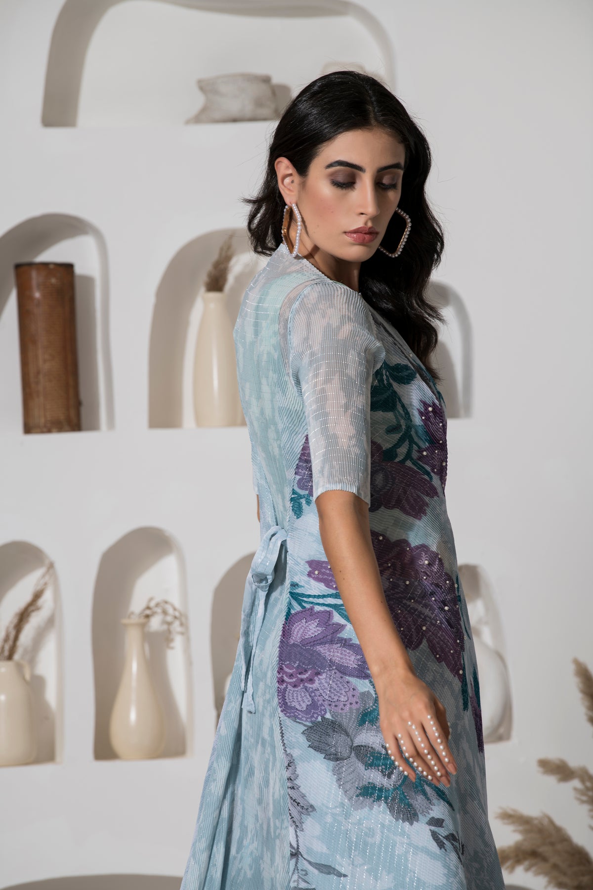 MOON LIGHT BLUE PRINT PLEATED CO-ORD SET