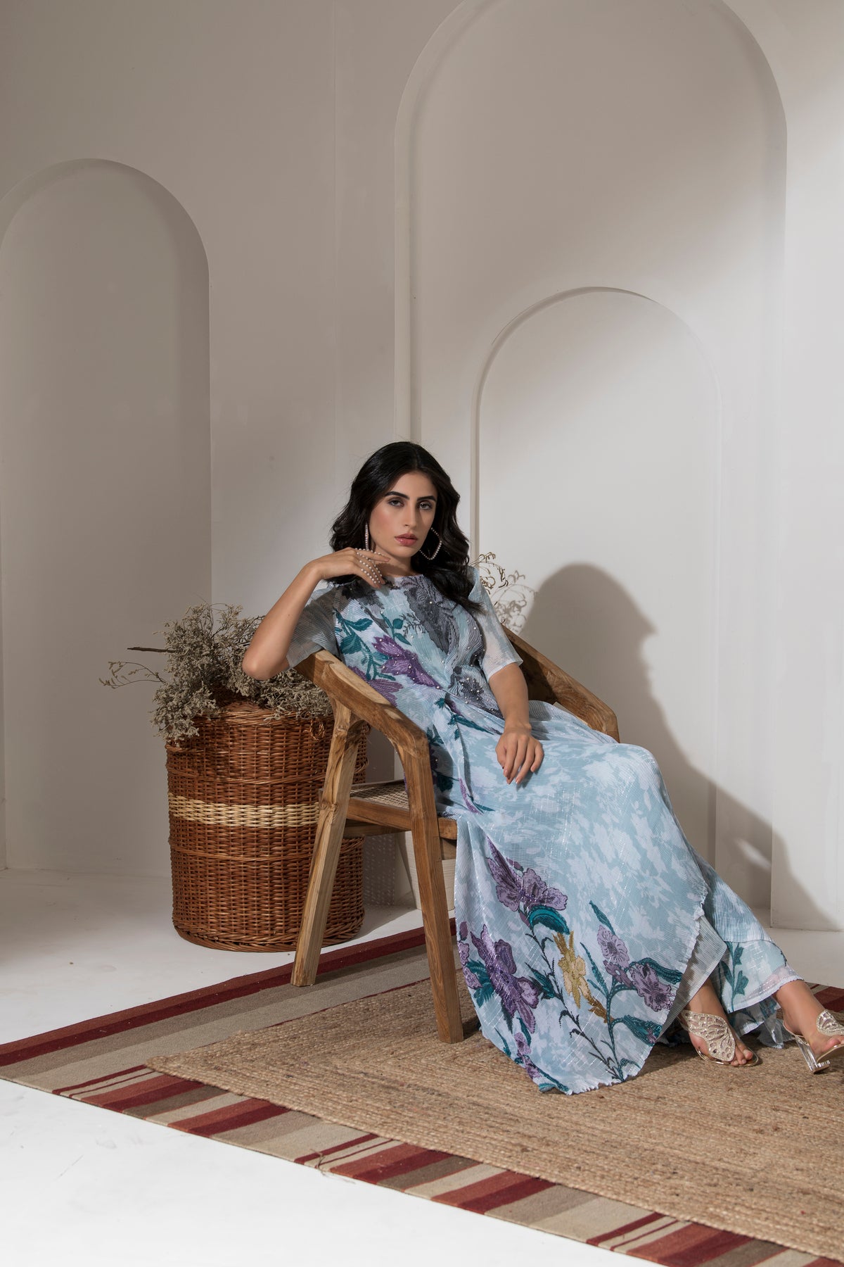 * Featuring a Moon Light Blue Kaftan Kurta with Palazzo Pant. It is paired with Hand-Embroidered Pearl work on Lurex Chiffon Fabric.
