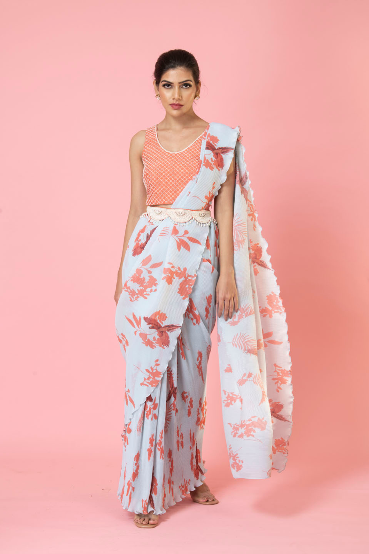Pre-draped Bird Digital print Saree