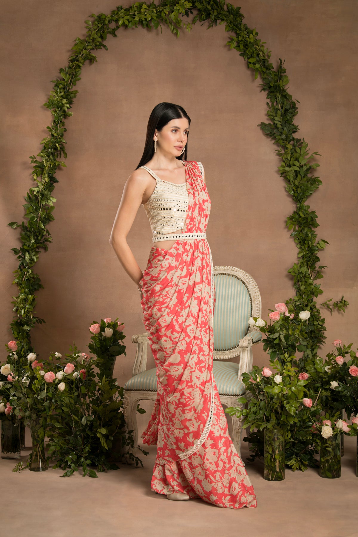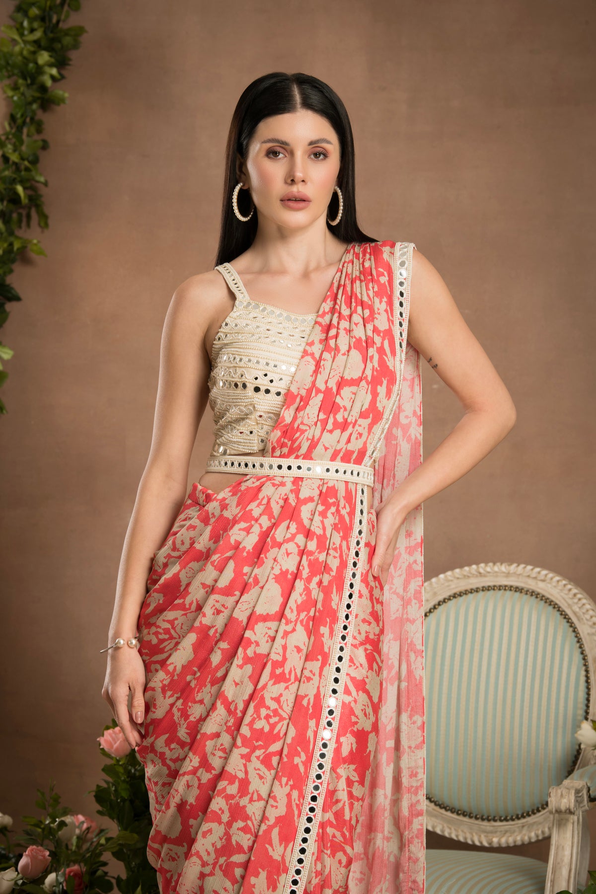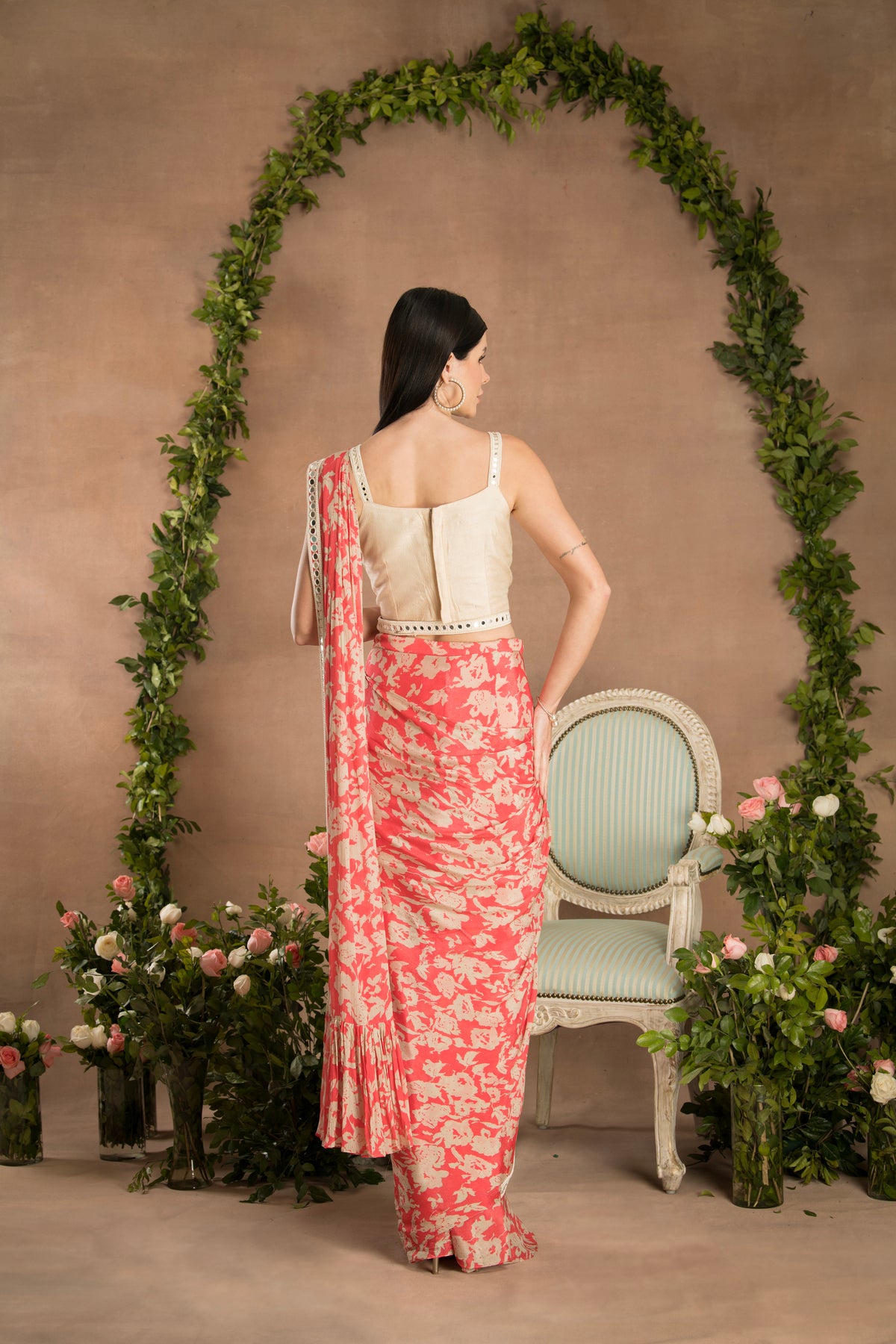 PRE-DRAPED PEACH PINK SAREE