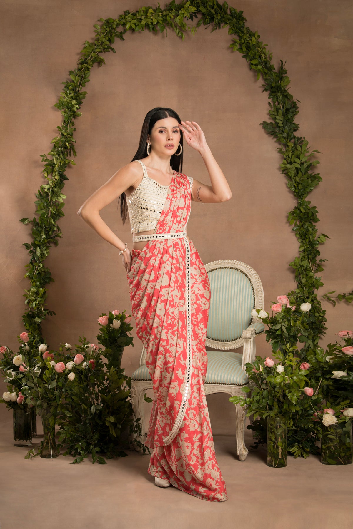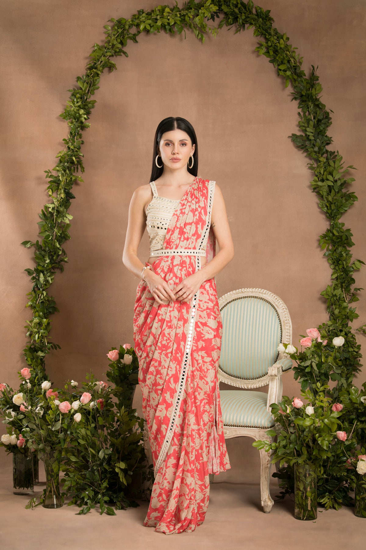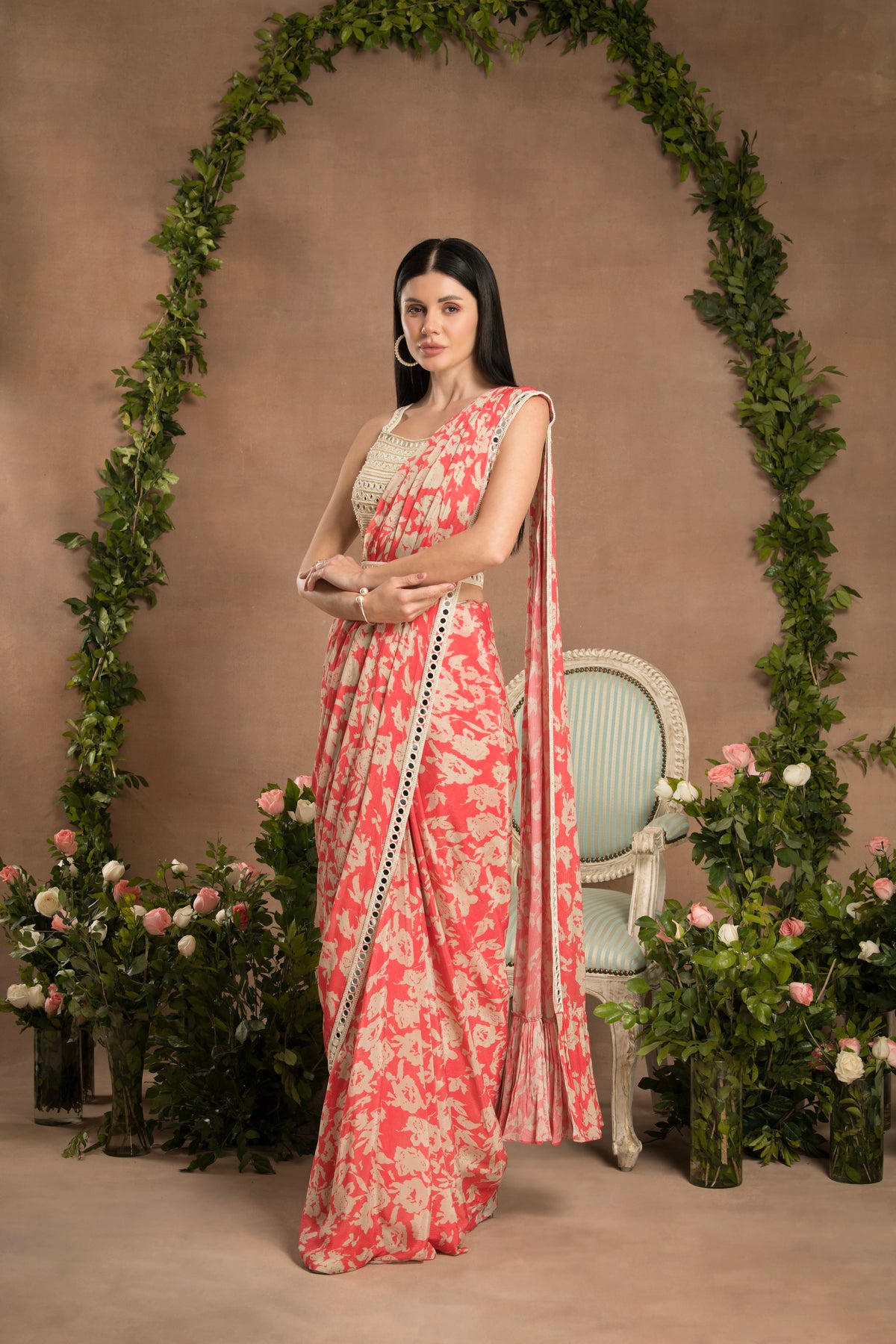 PRE-DRAPED PEACH PINK SAREE